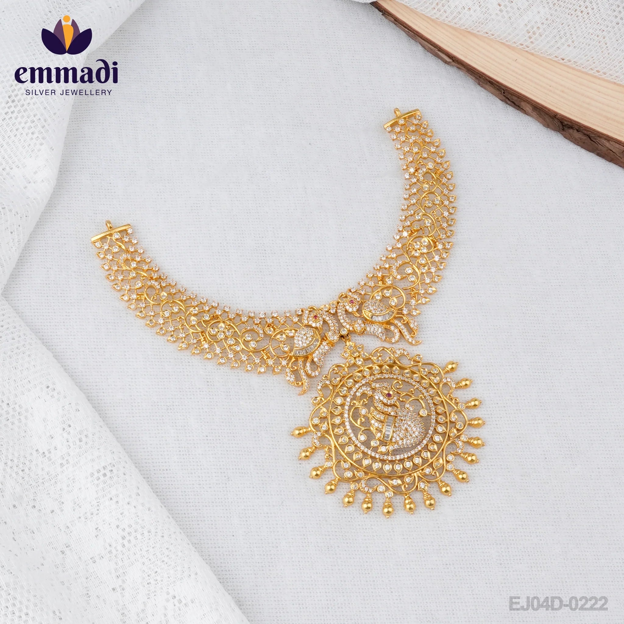 One of the key features of our CZ white necklace is the use of pure gold plating, which gives the piece a luxurious and rich look. The gold plating is meticulously applied by our skilled craftsmen, ensuring that the necklace shines with a beautiful golden hue. The pure 92.5 silver base of the necklace adds a touch of sophistication and durability, making it a timeless piece that will last for years to come.