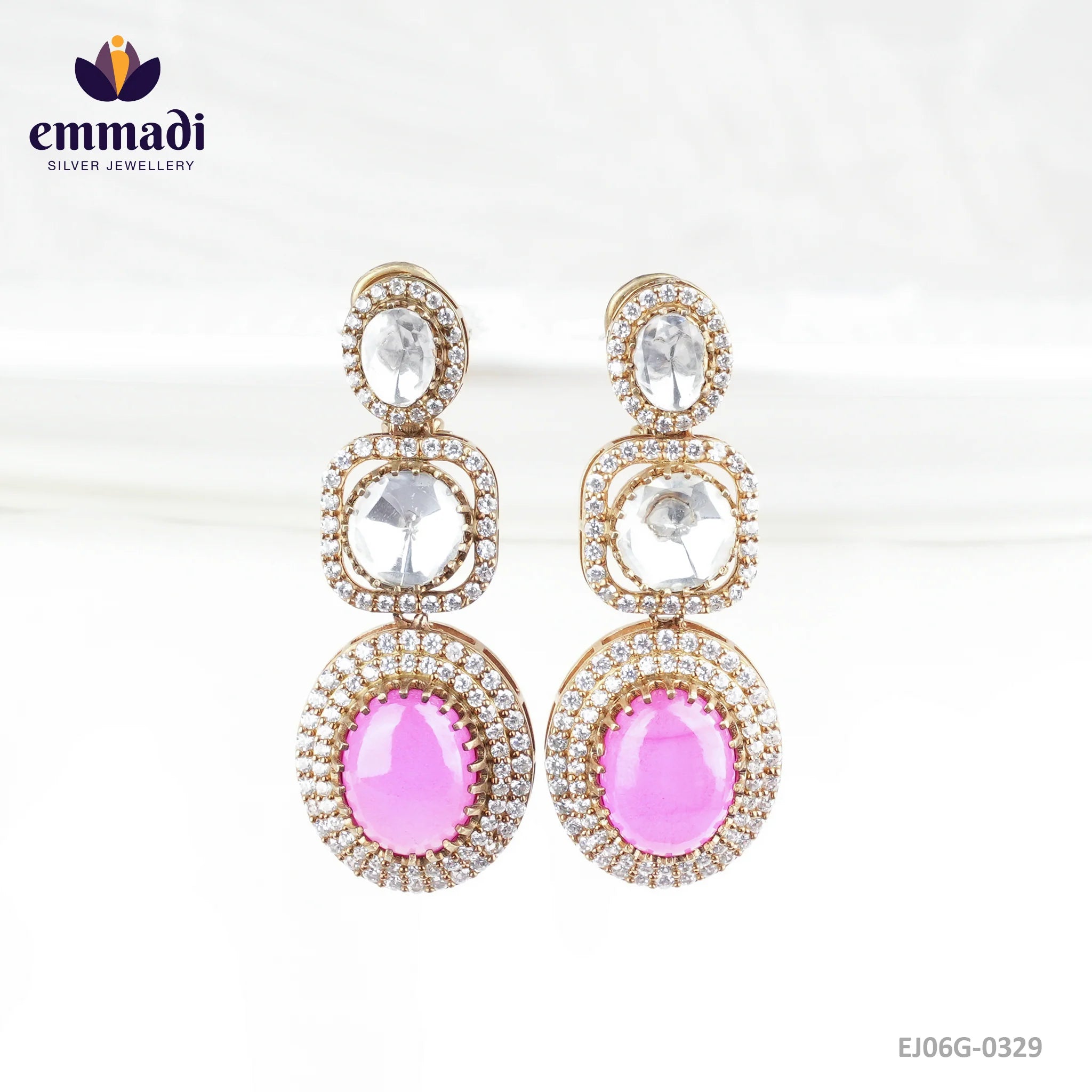 Indulge in opulence with the Supriya Victorian Pink Hangings, an exquisite addition to your jewellery collection. Handcrafted with precision and adorned with intricate details, these earrings exude sophistication and elegance. Elevate your style effortlessly with these stunning pieces from Emmadi Silver Jeweller, India's Largest silver brand.