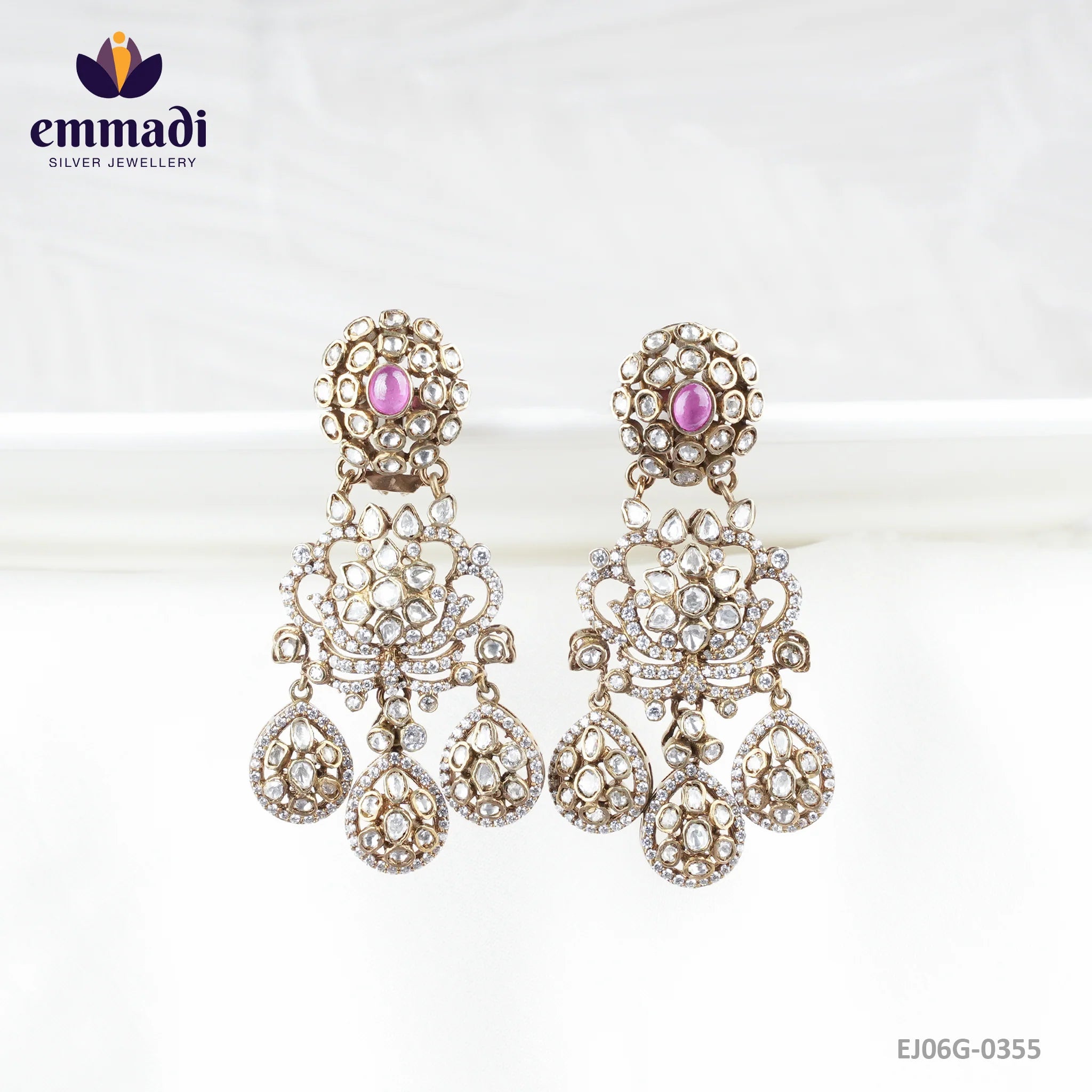 Indulge in the ultimate sophistication with the Taksaka Victorian Pink Hangings by Emmadi Silver Jeweller, India's Largest silver brand. Elevate your ensemble with these exquisite earrings dripping in elegance and charm. Let the Victorian-inspired design and enchanting pink gemstones add a touch of opulence to your look. Embrace luxury.