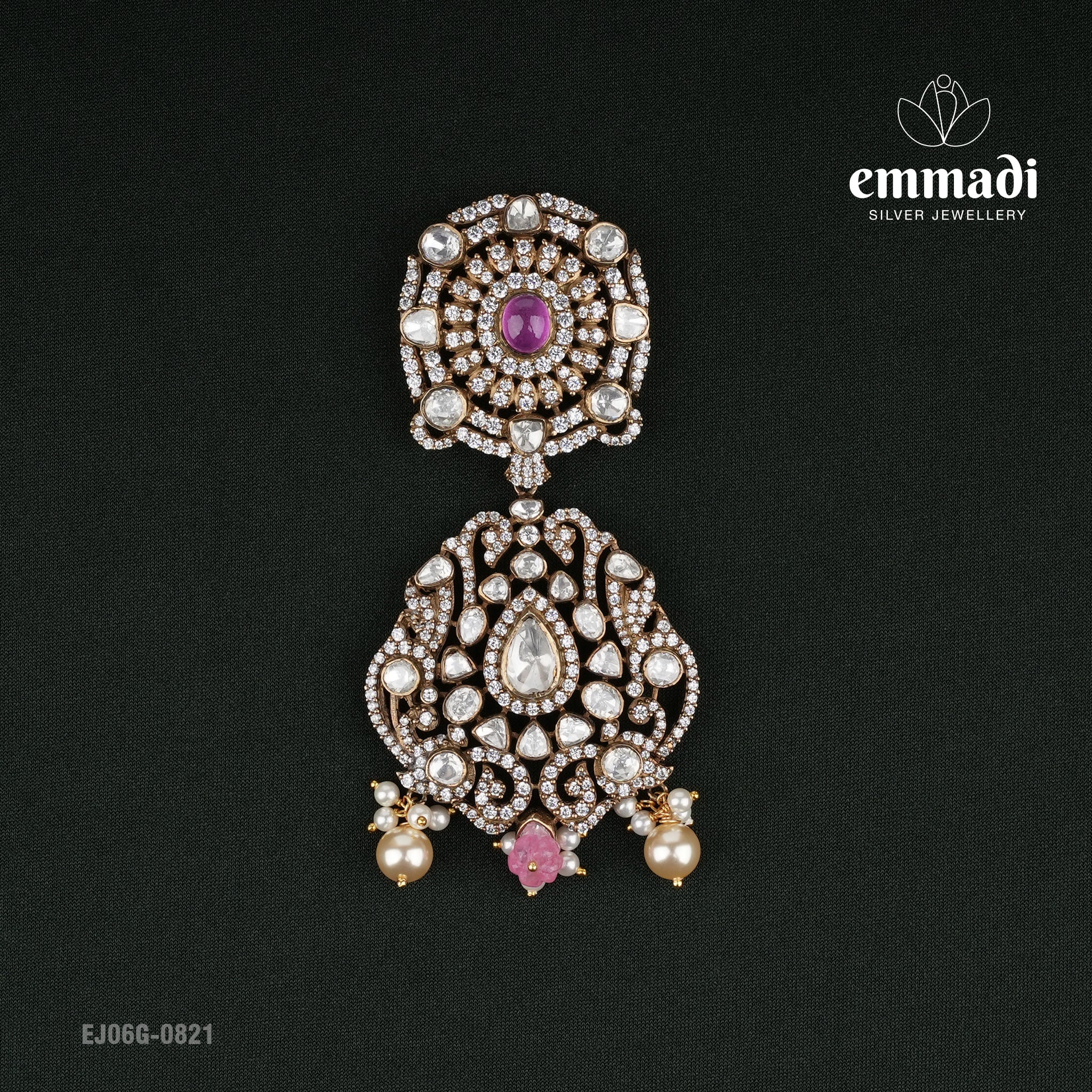Introducing the Bhaveeka Victorian Pink Pendant, a mesmerising piece from Emmadi Silver Jeweller, India's Largest silver brand. Elevate your style with this exquisite pendant, exuding Victorian elegance in a captivating shade of pink. Crafted with attention to detail, this pendant is a symbol of luxury and sophistication. Make a statement of opulence with the Bhaveeka Victorian Pink Pendant, a must-have addition to your jewellery collection.