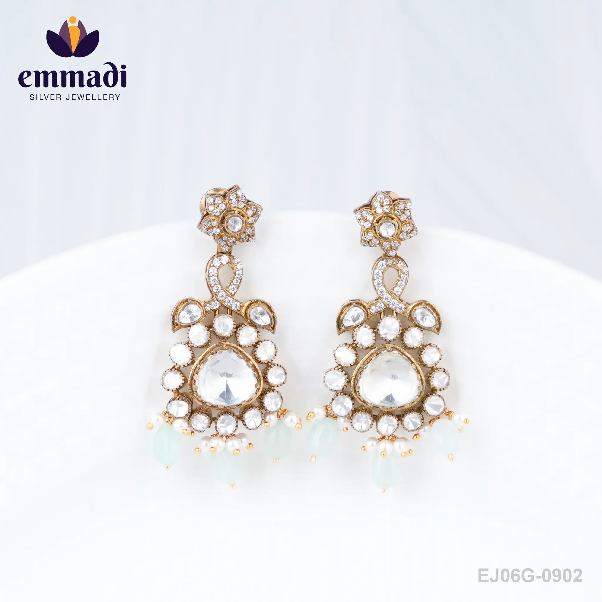 Indulge in the opulent elegance of the Chaithra Victorian White Hangings, a true masterpiece in silver craftsmanship from Emmadi Silver Jeweller, India's Largest silver brand. ���� Adorn yourself with these exquisite hangings, reminiscent of a bygone era of luxury and sophistication. Let the intricate Victorian design and dazzling white accents elevate your style to new heights. Make a statement of sheer refinement with every sway, exuding timeless charm and unmatched grace. Acquire a touch of grandeur with the Chaithra Victorian White Hangings - a symbol of refined taste and unparalleled beauty.