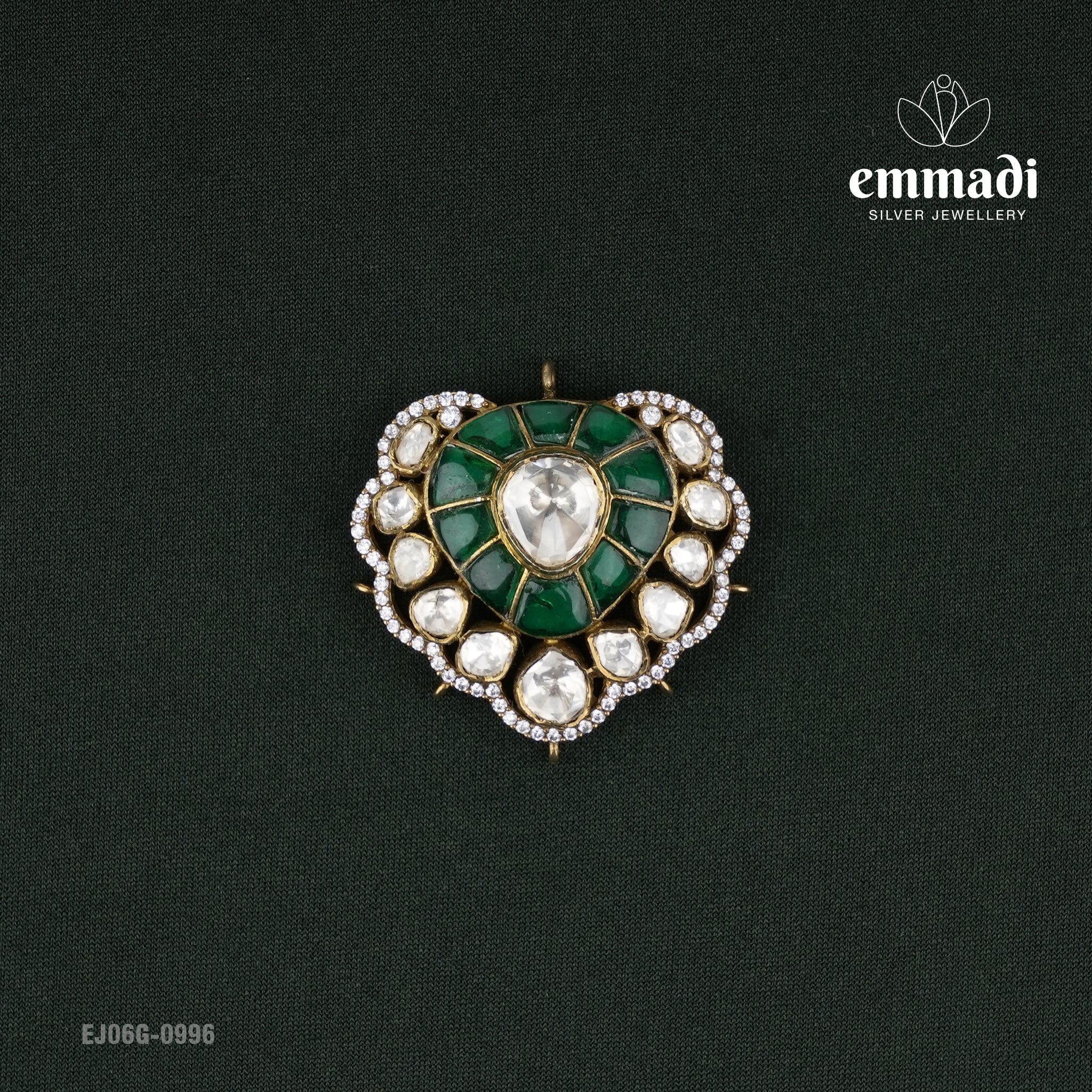 Indulge in elegance with the Dakshita Victorian Green Pendant from Emmadi Silver Jeweller, India's Largest silver brand. Adorn yourself with this exquisite piece, crafted with meticulous detail and featuring a mesmerising green gemstone at its heart. Elevate your style to a new level of sophistication with this luxurious pendant that exudes grace and refinement. Make a statement of timeless beauty with the Dakshita Victorian Green Pendant.