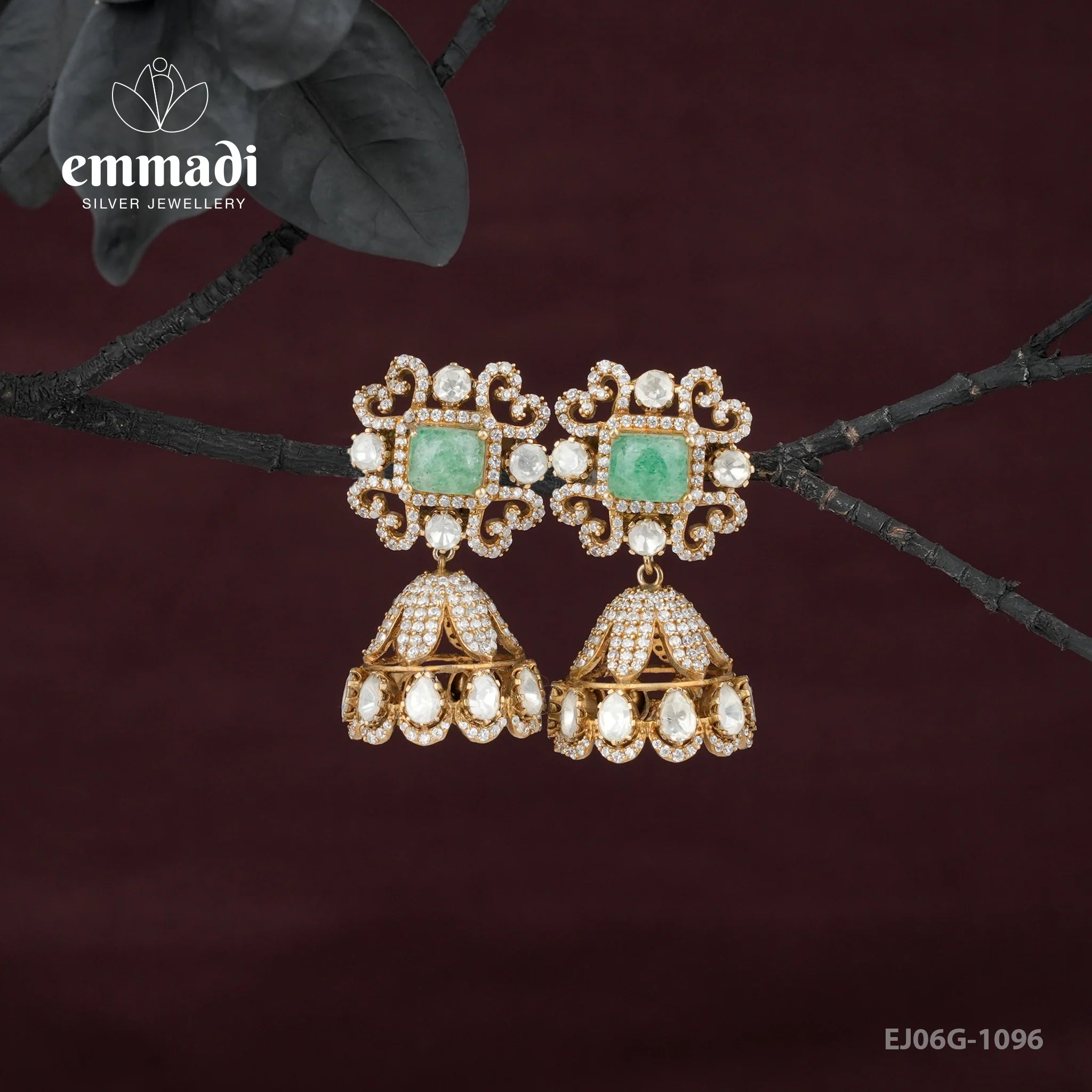 Indulge in the beauty of Deevitha Victorian Green Buttalu, an exquisite creation from Emmadi Silver Jeweller, India's Largest silver brand. Adorn yourself with these elegant earrings and let the intricate Victorian design and captivating green accents elevate your style to new heights. Enhance your ensemble with a touch of timeless elegance and sophistication.