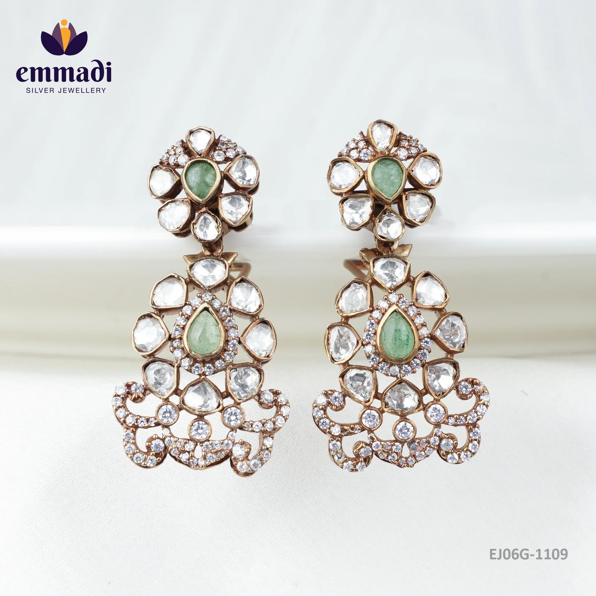 Indulge in the opulent elegance of Dhumor Victorian Green Hangings, designed to elevate your style to new heights. Crafted with meticulous attention to detail, these hangings exude a timeless charm that resonates with sophistication and grace. Let these exquisite pieces from Emmadi Silver Jeweller, India's Largest silver brand, adorn you with a touch of Victorian allure. Enhance your ensemble with a touch of luxury that whispers of refined taste and impeccable style. Elevate your look to a level of unmatched elegance with these stunning Victorian Green Hangings.