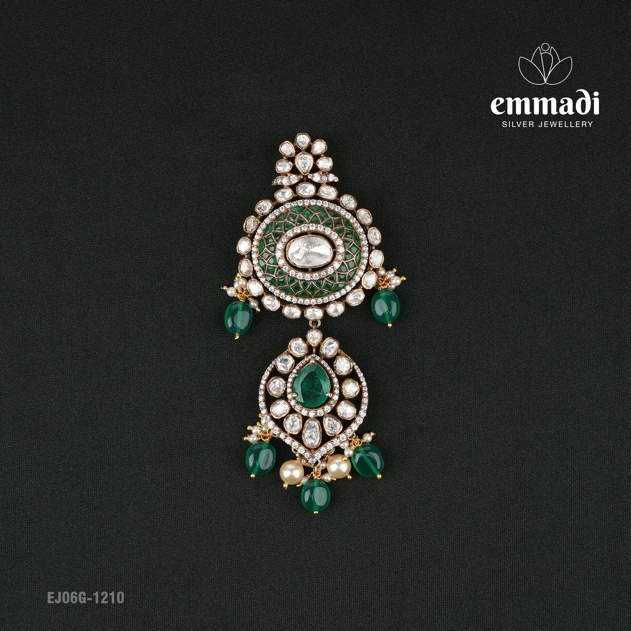 Indulge in the sheer opulence of the Ekangika Victorian Green Pendant by Emmadi Silver Jeweller, India's Largest silver brand. This exquisite pendant exudes a timeless elegance that is sure to captivate all admirers. Immerse yourself in the allure of this stunning piece, a symbol of sophistication and grace. Elevate your style with the Ekangika pendant and let your radiance shine effortlessly wherever you go.