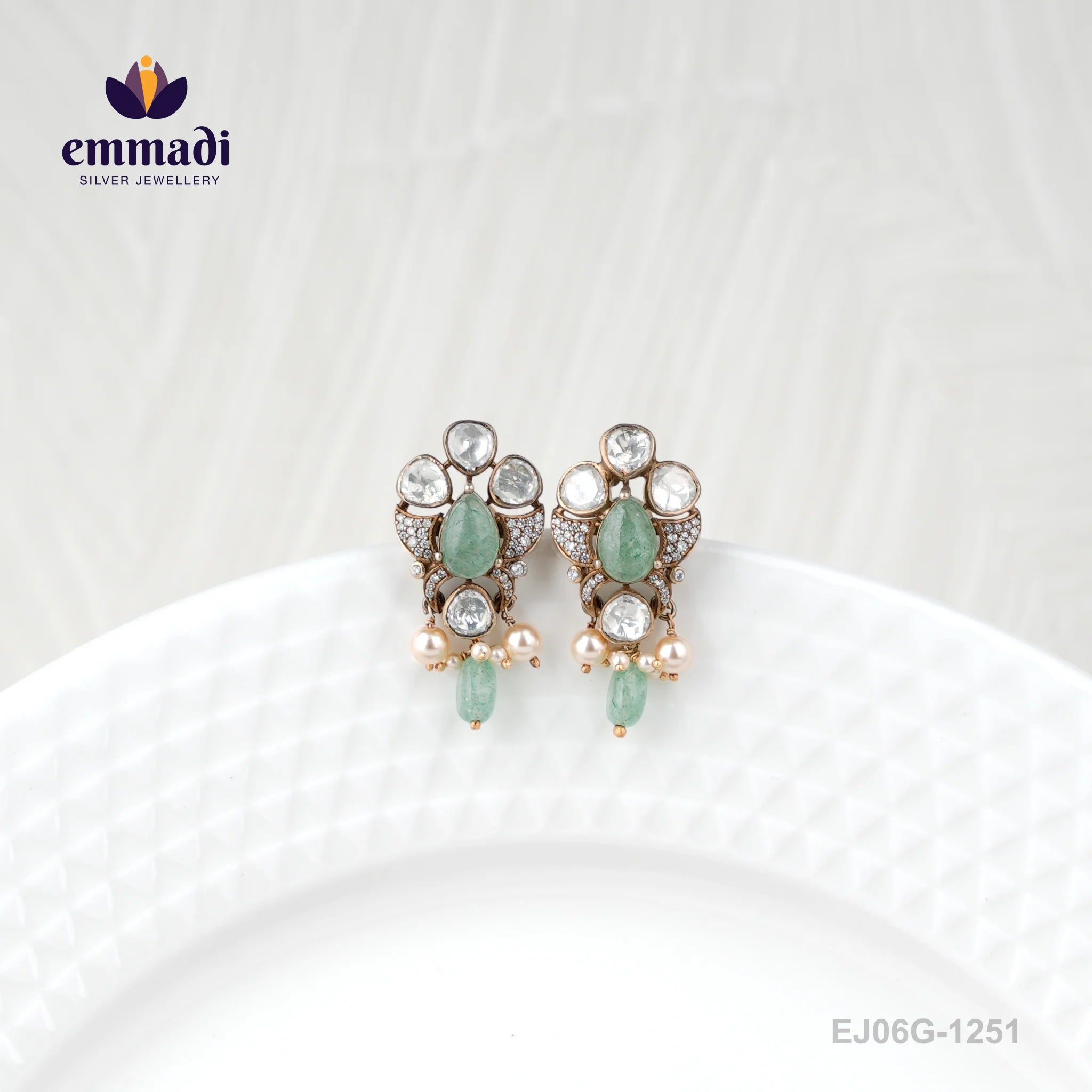 Indulge in the timeless elegance of the Haribala Victorian Green Studs, a masterpiece of sophistication and splendour. Crafted by Emmadi Silver Jeweller, India's Largest silver brand, these exquisite studs exude a charm that is both classic and contemporary. Elevate your style with a touch of luxury and grace, perfect for any occasion where you desire to make a statement with understated elegance. Adorn yourself with the allure of Victorian-inspired design and the subtle allure of green accents, truly a reflection of refined taste and opulence.