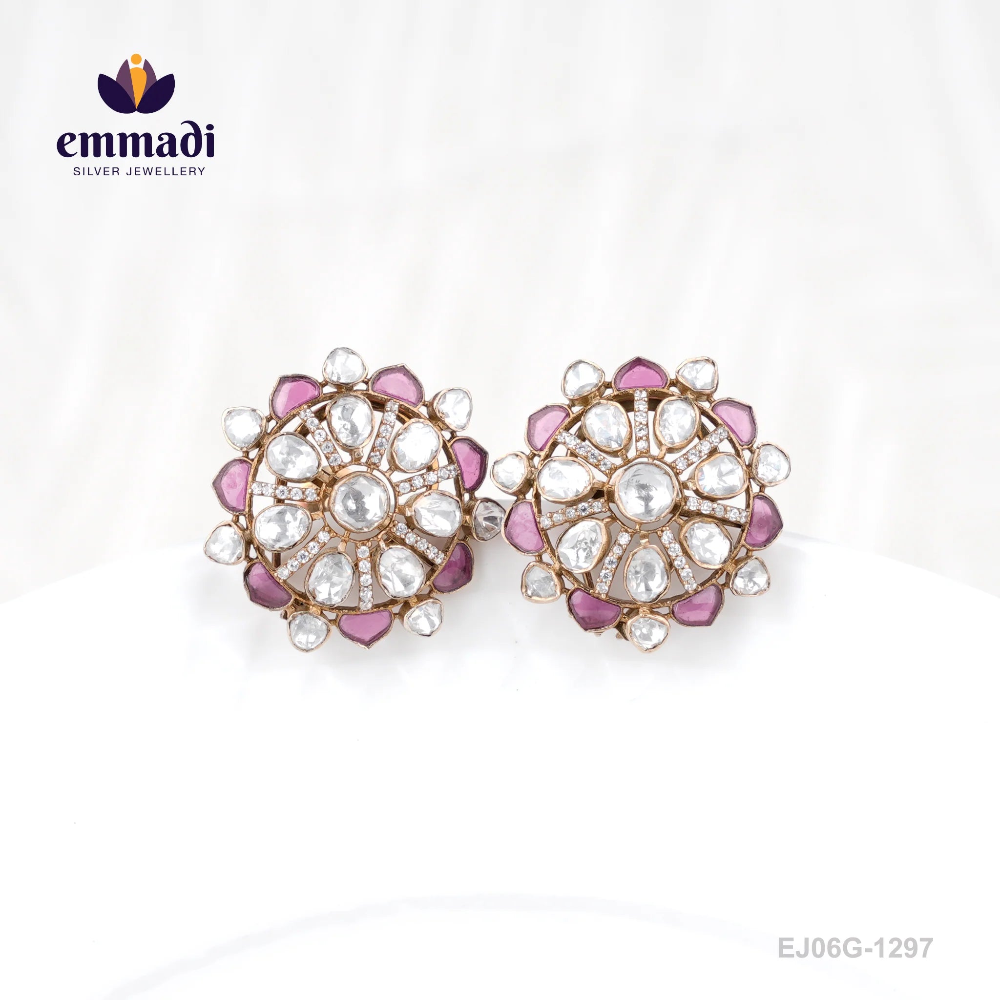 Indulge in the exquisite elegance of Jaisudha Victorian Pink Studs, a true gem in Emmadi Silver Jeweller's collection. Crafted to perfection, these mesmerising studs are the epitome of luxury and sophistication. Let your style speak volumes with these dazzling pieces that exude charm and grace. Elevate your look with the unparalleled beauty of Victorian Pink Studs and make a statement wherever you go.