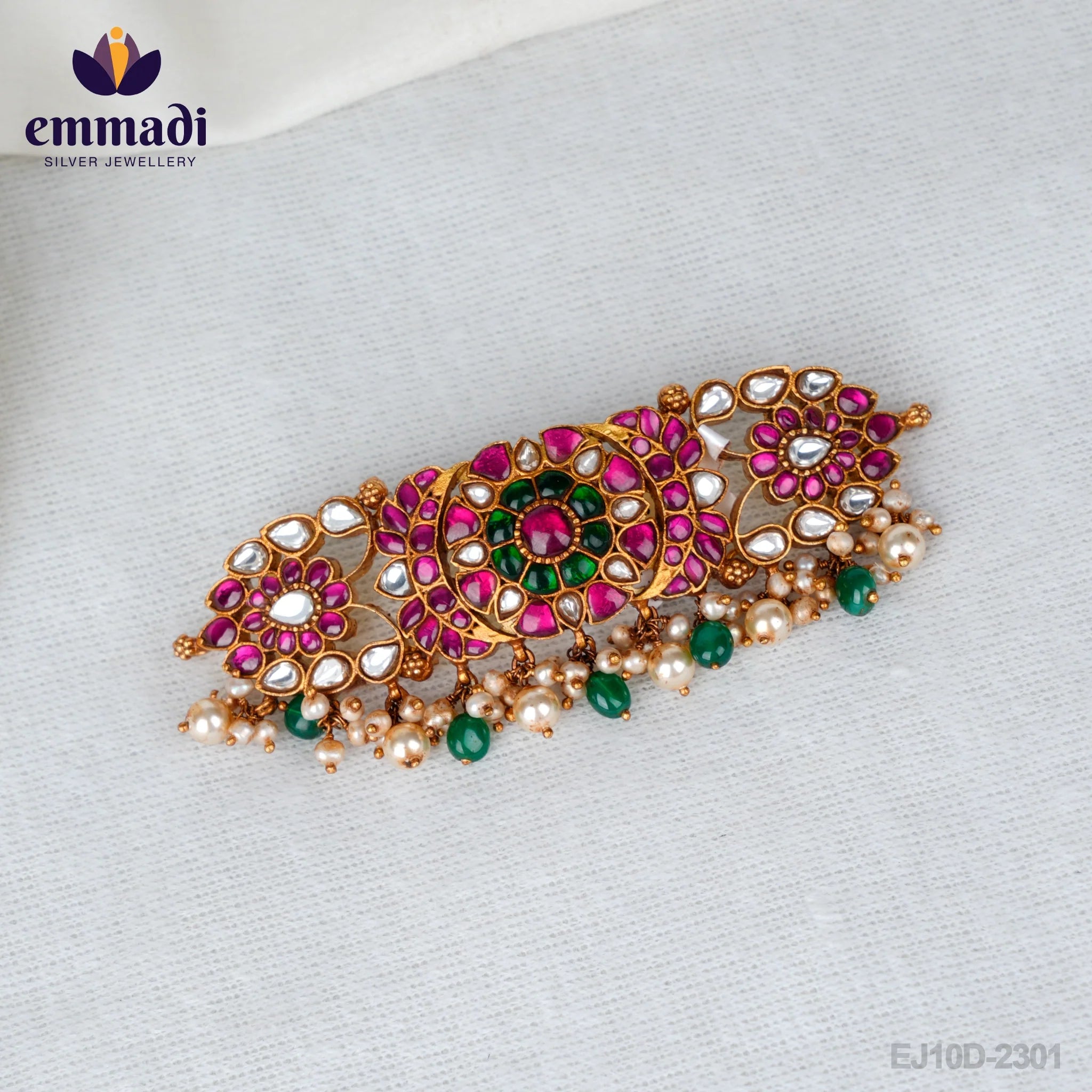Emmadi Jewellers presents the exquisite Varanasi Choker Kundan Multi Necklace, handcrafted with pure gold plating on 92.5 silver. This stunning piece is designed to make a statement with its intricate Kundan work and traditional Indian design.
