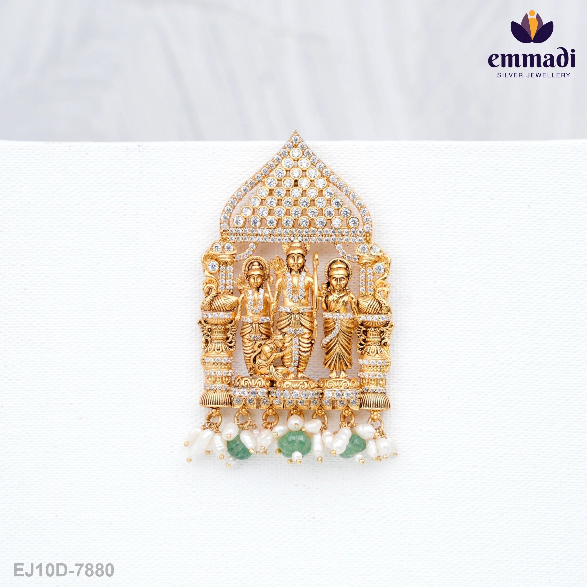 Introducing the exquisite Lavanika Ramparivar Green Pendant, a masterpiece in elegance and sophistication. Crafted by Emmadi Silver Jeweller, India's Largest silver brand, this pendant exudes luxury and style. The stunning green hue of the pendant is a captivating sight, sure to make you stand out in any crowd. Elevate your look and add a touch of glamour to your ensemble with this remarkable piece. Make a statement with the Lavanika Ramparivar Green Pendant and embrace the beauty of fine jewellery.