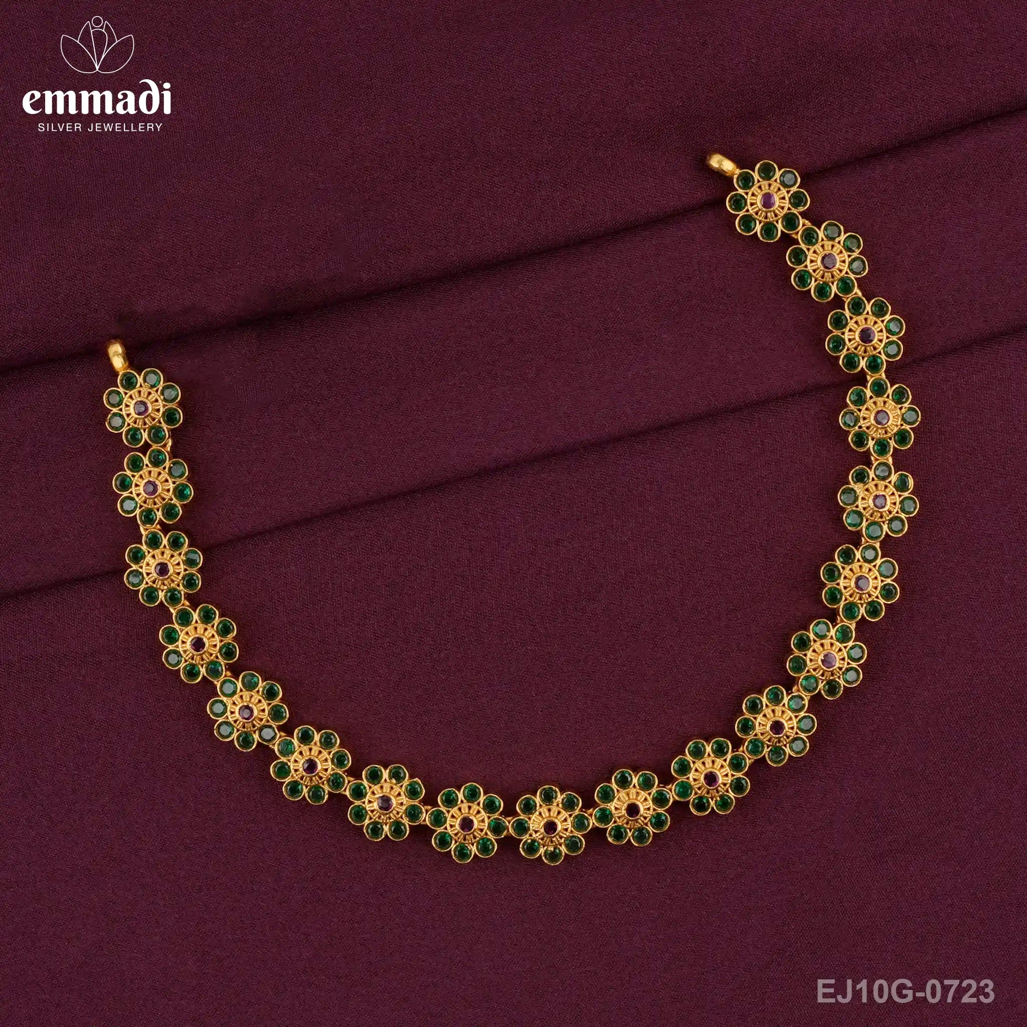 Indulge in opulence with the Sanyukta Stone Multi Necklace from Emmadi Silver Jeweller, India's Largest silver brand. Dripping with elegance, this exquisite piece exudes luxury and sophistication. Elevate your ensemble and make a statement with this dazzling necklace that beautifully combines tradition and modernity. Adorn yourself with the finest craftsmanship and radiate effortless glamour wherever you go. Experience the allure of timeless beauty with the Sanyukta Stone Multi Necklace.