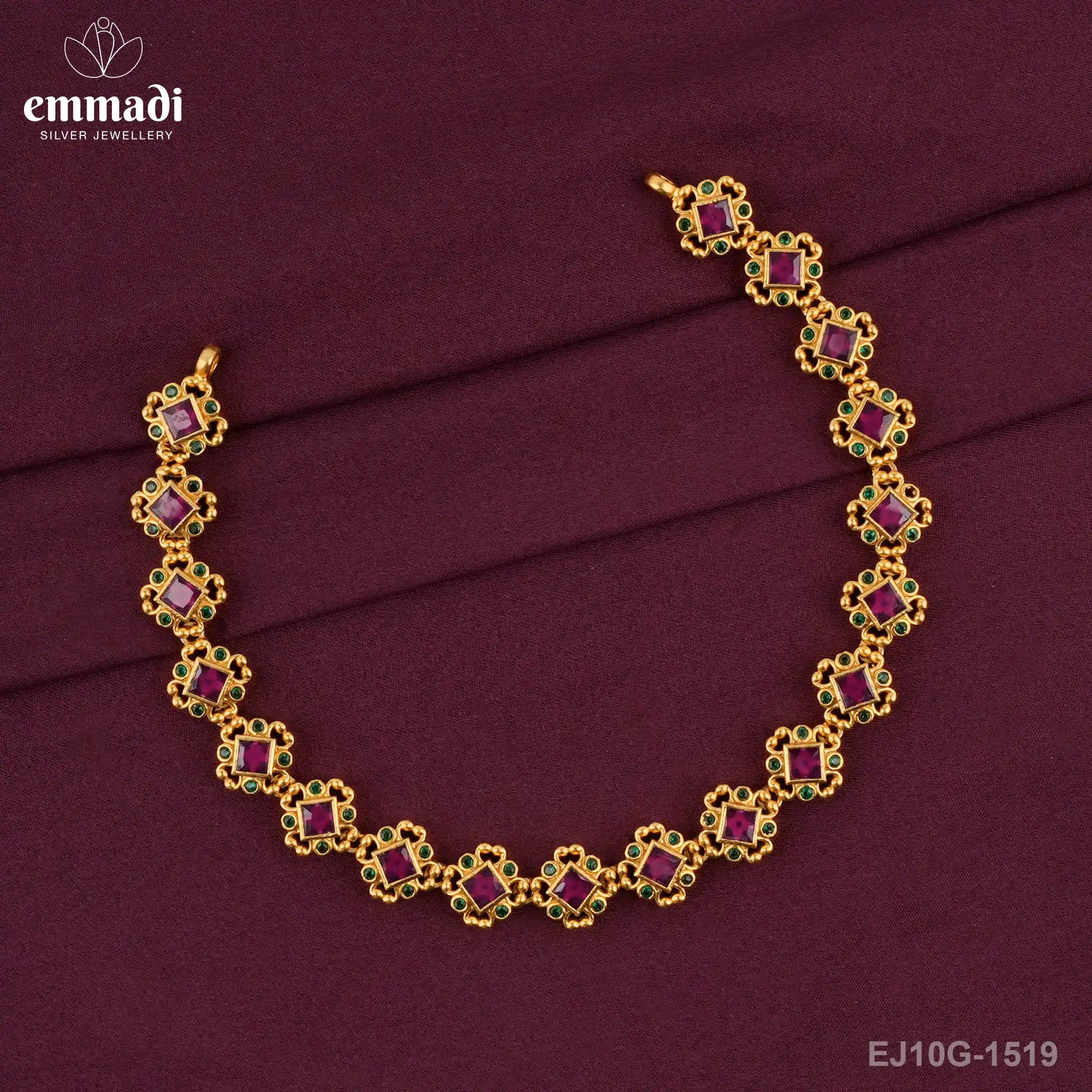 Indulge in the essence of opulence with the Debosmita Stones Green Necklace from Emmadi Silver Jeweller, India's Largest silver brand. This exquisite piece exudes sophistication and elegance with its vibrant green stones that beautifully complement any attire. Elevate your style effortlessly and make a statement with this luxurious necklace that exudes timeless glamour and impeccable craftsmanship. Adorn yourself with a touch of luxury and grace, showcasing your impeccable taste to the world. Unleash your inner elegance with the Debosmita Stones Green Necklace.
