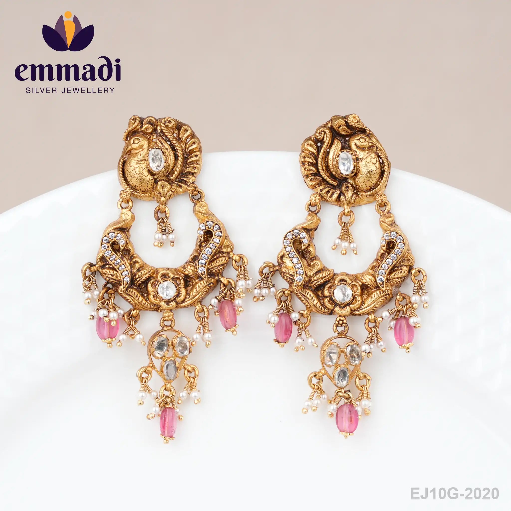 Indulge in the exquisite elegance of Pabitrata Polki Nakshi White Hangings, crafted by Emmadi Silver Jeweller, India's Largest silver brand. These ethereal earrings will elevate your look to a realm of pure sophistication and glamour. Let the intricate design and shimmering white stones capture the essence of luxury and style, making a statement that is simply mesmerising. Elevate your jewellery collection to new heights with these dazzling white hangings that effortlessly blend tradition with contemporary charm.