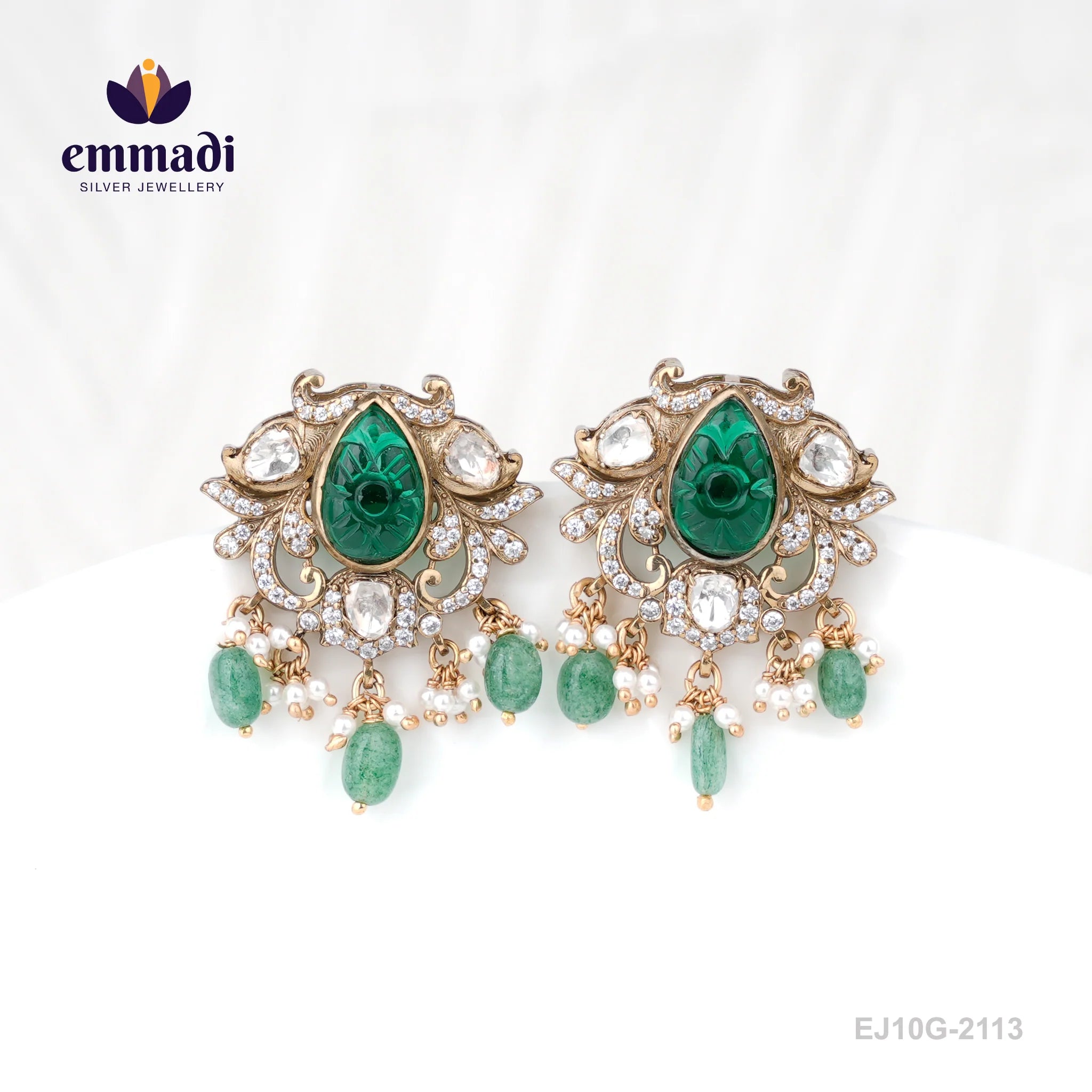 Indulge in the opulence of Rajabrata Victorian Green Studs, exquisitely crafted by Emmadi Silver Jeweller, India's Largest silver brand. Elevate your style with these elegant studs adorned with rich green hues, reminiscent of royalty. Perfect for adding a touch of sophistication to any ensemble, these studs are a timeless addition to your jewellery collection. Experience the allure of luxury with Rajabrata Victorian Green Studs.