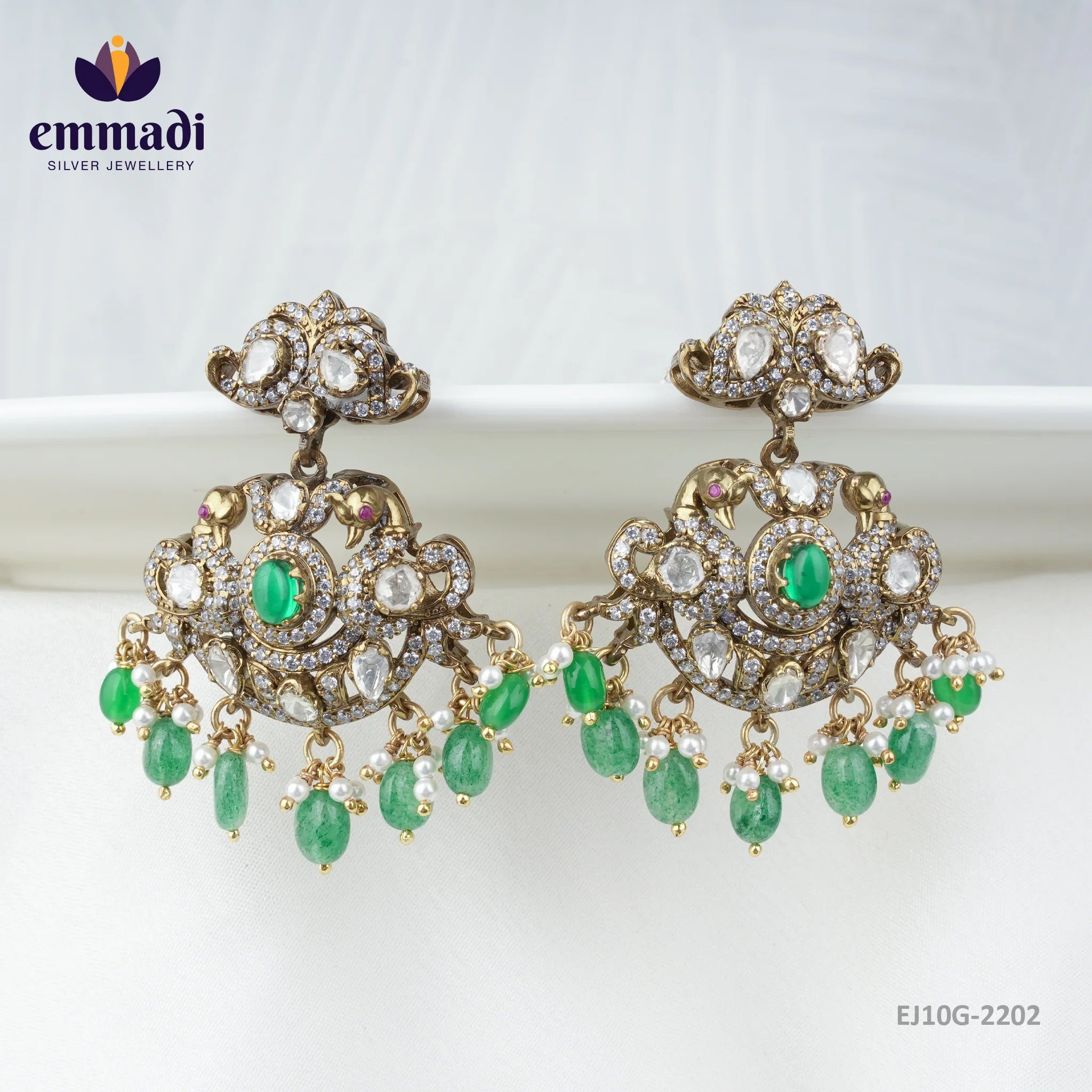 Introducing the Ratnendra Victorian Multi Hangings, a captivating fusion of elegance and sophistication from Emmadi Silver Jeweller, India's Largest silver brand. Elevate your look with these exquisite earrings that exude luxury and charm. Crafted with intricate details in a Victorian style, these hangings are designed to dazzle and enchant. Make a statement with these timeless pieces that effortlessly combine tradition with modernity. Step into a world of opulence with the Ratnendra Victorian Multi Hangings.
