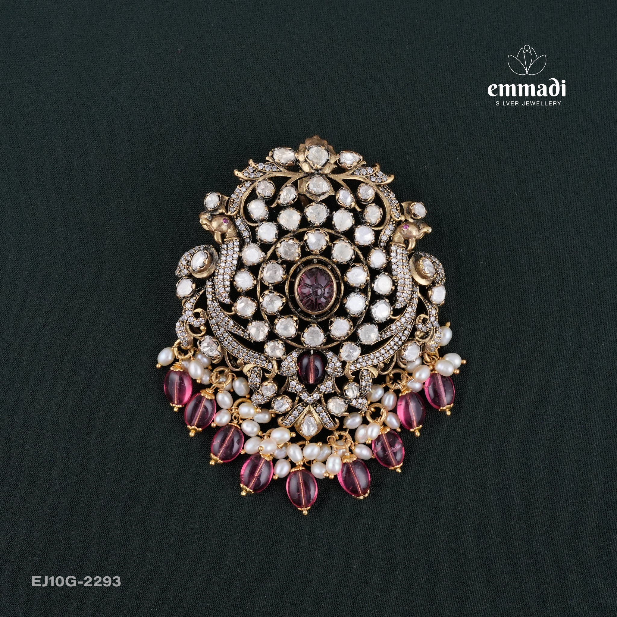 Indulge in opulent elegance with the Sayantika Victorian Pink Pendant by Emmadi Silver Jeweller, India's Largest silver brand. This exquisite piece exudes sophistication and charm, making it the perfect accessory for those who appreciate timeless beauty. Elevate your style with this captivating pendant that seamlessly blends vintage allure with contemporary flair. Make a statement and turn heads wherever you go with this luxurious piece that radiates grace and refinement.