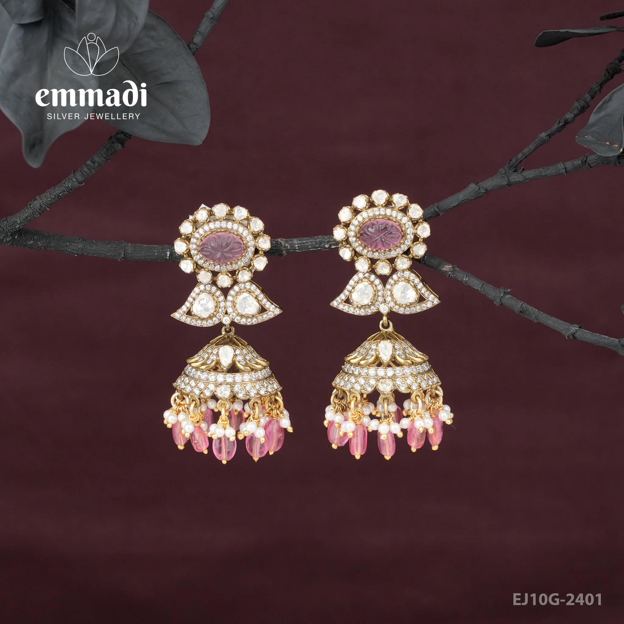 Indulge in the exquisite elegance of Va?ka?aka Victorian Pink Buttalu, crafted by Emmadi Silver Jeweller, India's Largest silver brand. Elevate your style with these timeless pieces that exude opulence and sophistication. Make a statement of luxury and grace with these stunning earrings that effortlessly capture the essence of Victorian glamour. Imbue your look with a touch of royalty and enchantment, perfect for those who appreciate the finer things in life. Adorn yourself with Va?ka?aka Victorian Pink Buttalu and let your beauty shine with unmatched brilliance.