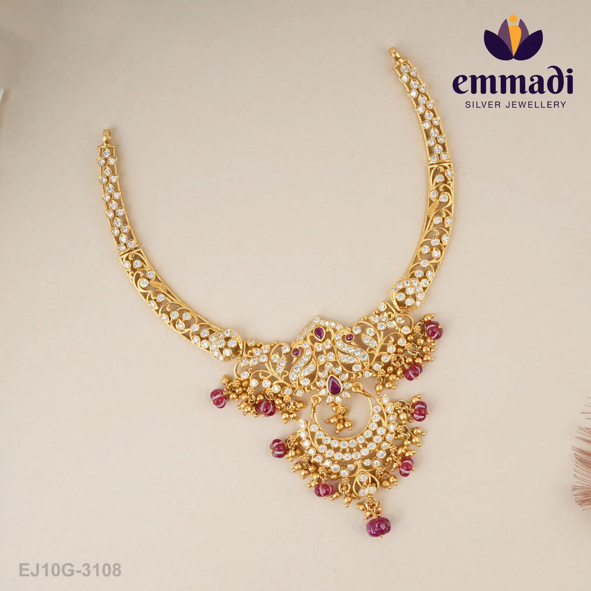 Indulge in the opulence of the Maharaksha Stone Kanty, a masterpiece crafted by Emmadi Silver Jeweller, India's Largest silver brand. Elevate your style to new heights with this exquisitely designed piece that exudes elegance and sophistication. Enhance your look with a touch of luxury and grace that only the finest jewellery can provide. Experience the allure of timeless beauty with the Maharaksha Stone Kanty - a true symbol of exquisite craftsmanship and unparalleled quality.