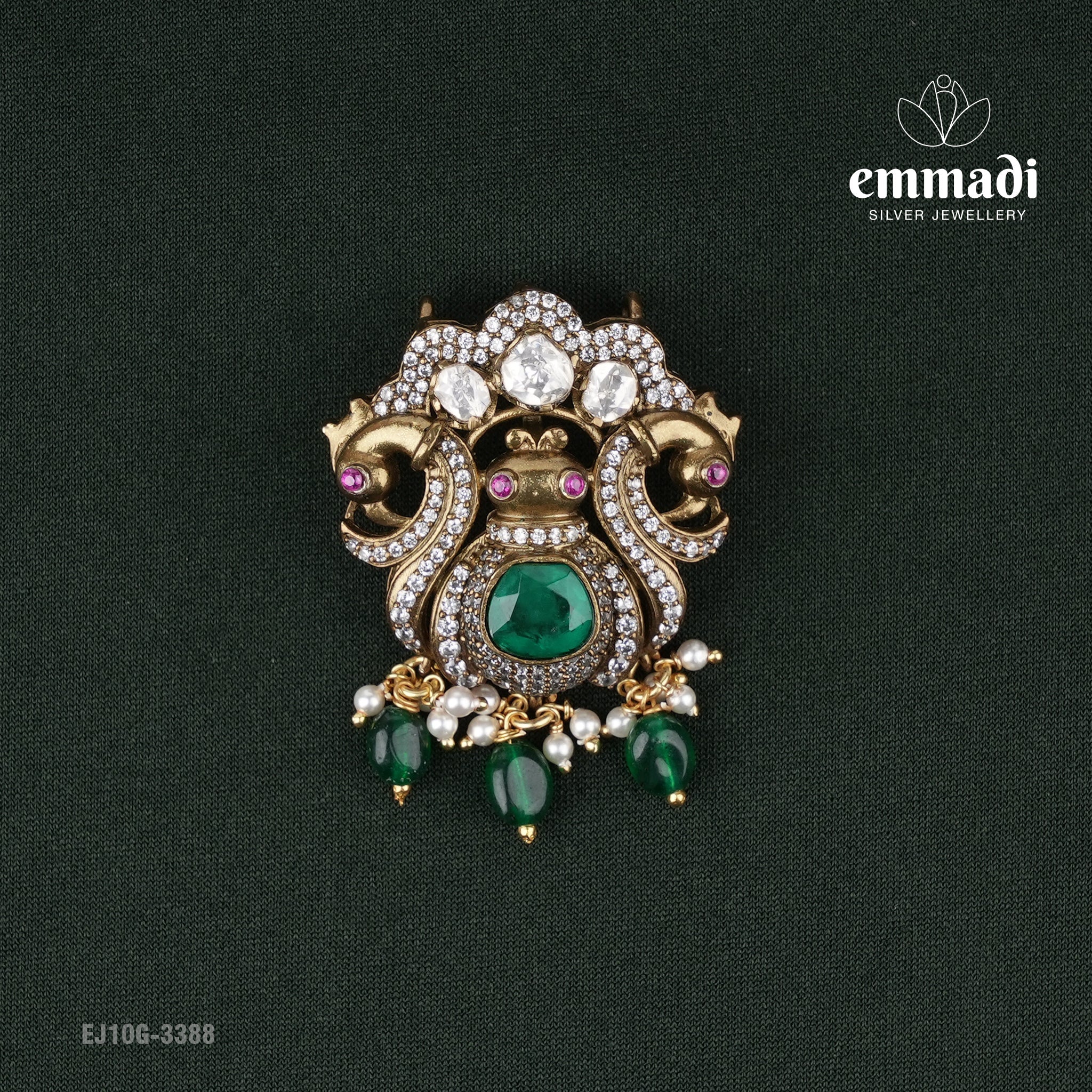 Indulge in the exquisite elegance of the Pashupriya Victorian Pendant, a breathtaking creation by Emmadi Silver Jeweller, India's Largest silver brand. Crafted with meticulous attention to detail, this pendant exudes sophistication and charm, making it the perfect accessory for those who appreciate luxury. Elevate your style with this timeless piece that effortlessly blends vintage allure with contemporary glamour. Embrace the allure of Victorian-inspired design and add a touch of opulence to your look with this stunning pendant.