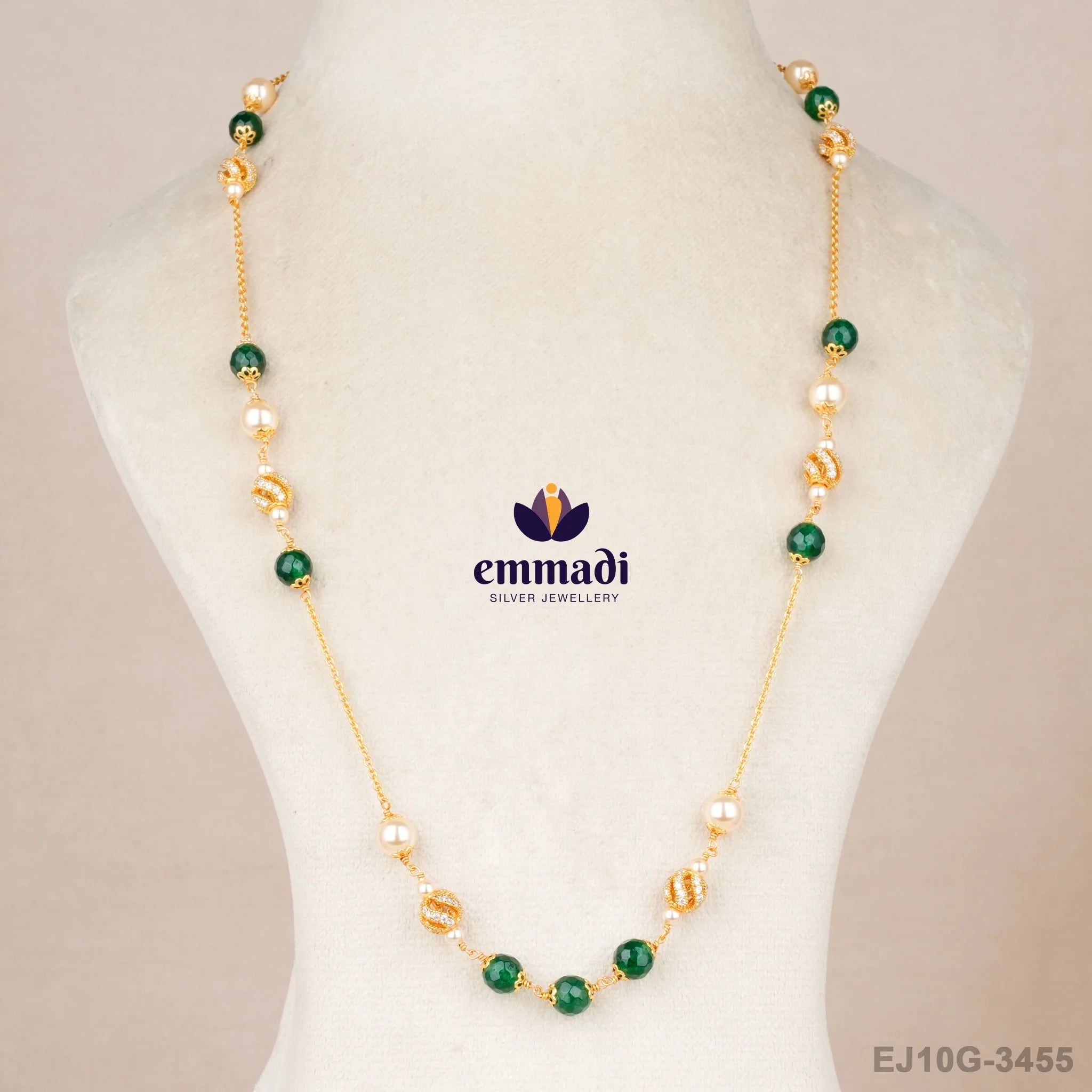 Indulge in the enchanting allure of the Shakuntala CZ Balls Green Chain by Emmadi Silver Jewellers, India's Largest silver brand. This exquisite piece exudes sophistication and charm, adding a touch of opulence to any ensemble. Elevate your look with its captivating emerald-green hues and sparkling cubic zirconia embellishments. The perfect accessory for those who appreciate refined elegance and timeless beauty.