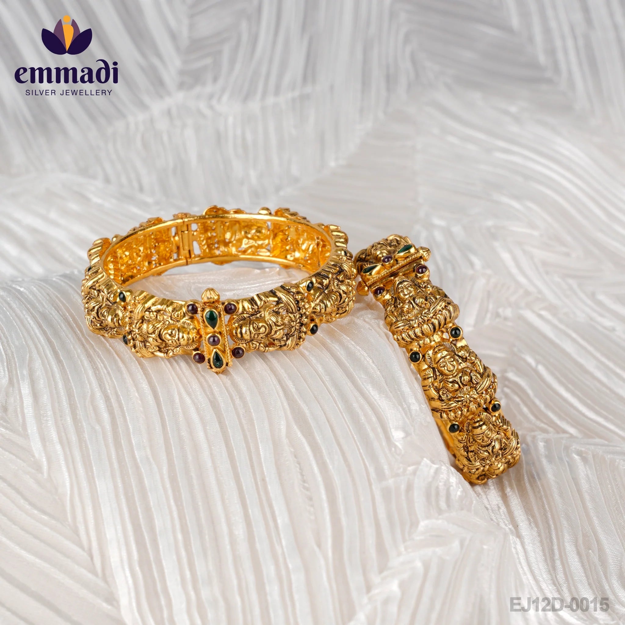 The Nakshi Multi Bangles are versatile pieces that can be worn alone for a simple and elegant look, or stacked together for a bold and eye-catching statement. The intricate design of the bangles adds a touch of traditional Indian beauty to any outfit, making them the perfect accessory for any occasion.