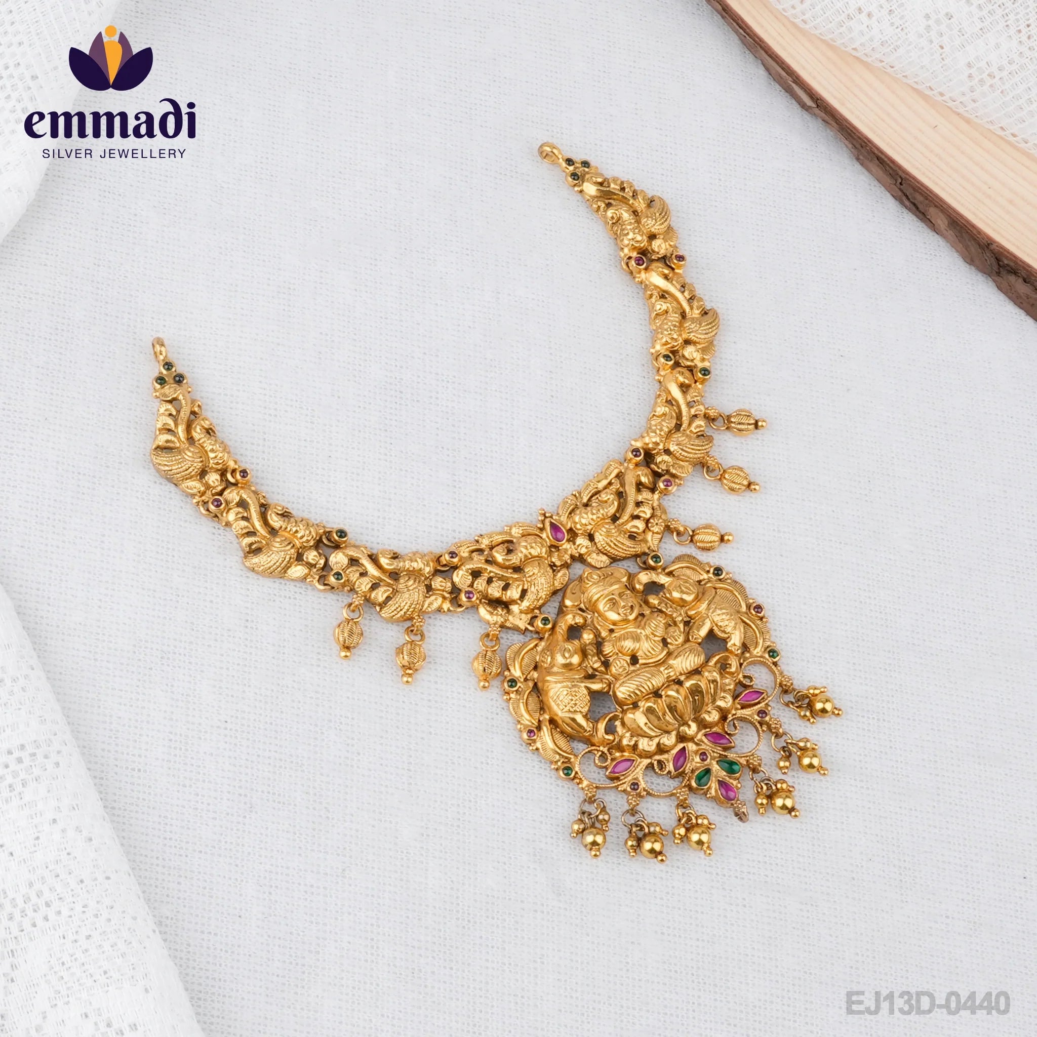The necklace is adorned with multiple layers of gold plating, giving it a rich and luxurious look that will surely make a statement. The use of pure 92.5 silver ensures that the necklace is not only beautiful but also durable and long-lasting.