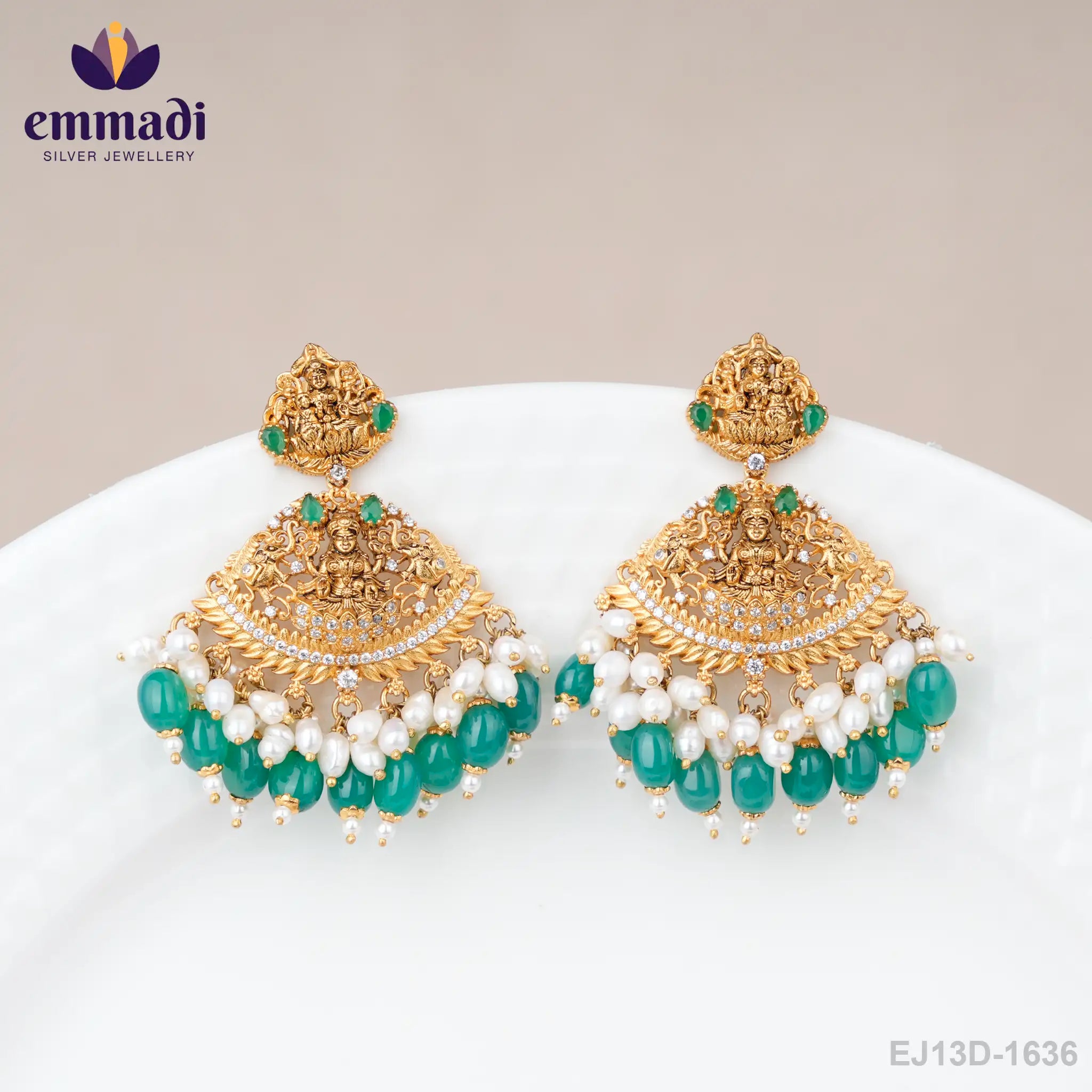 Indulge in pure opulence with the Darminee Nakshi Green Hangings from Emmadi Silver Jeweller, India's Largest silver brand. Experience the allure of impeccable craftsmanship and exquisite design, elevating your style to new heights. Enhance your look with a touch of sophistication and elegance, making a statement that resonates luxury and glamour wherever you go. Elevate your style with these captivating green hangings.