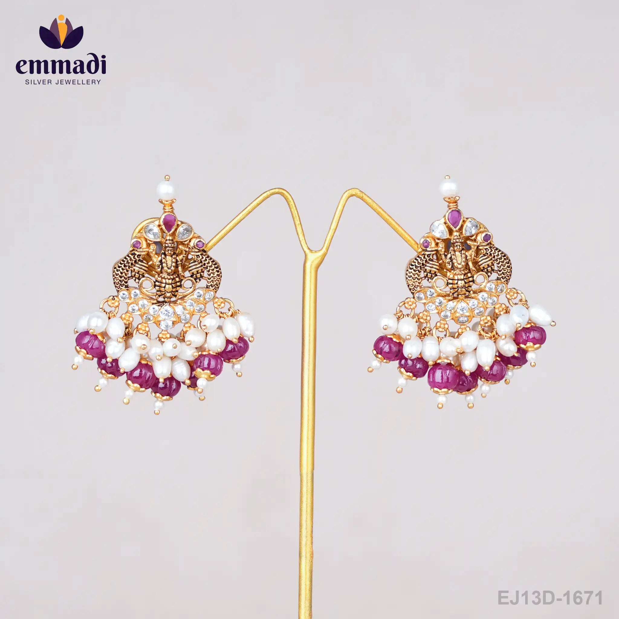 Indulge in the exquisite elegance of Kallolee Nakshi Red Hangings from Emmadi Silver Jeweller, India's Largest silver brand. ���� Crafted with intricate precision, these glamorous hangings effortlessly elevate any ensemble to new heights of luxury. Adorn yourself with sophistication and style, standing out as the epitome of tasteful opulence. Experience the allure of timeless beauty with Kallolee Nakshi Red Hangings - a true masterpiece of refined glamour.