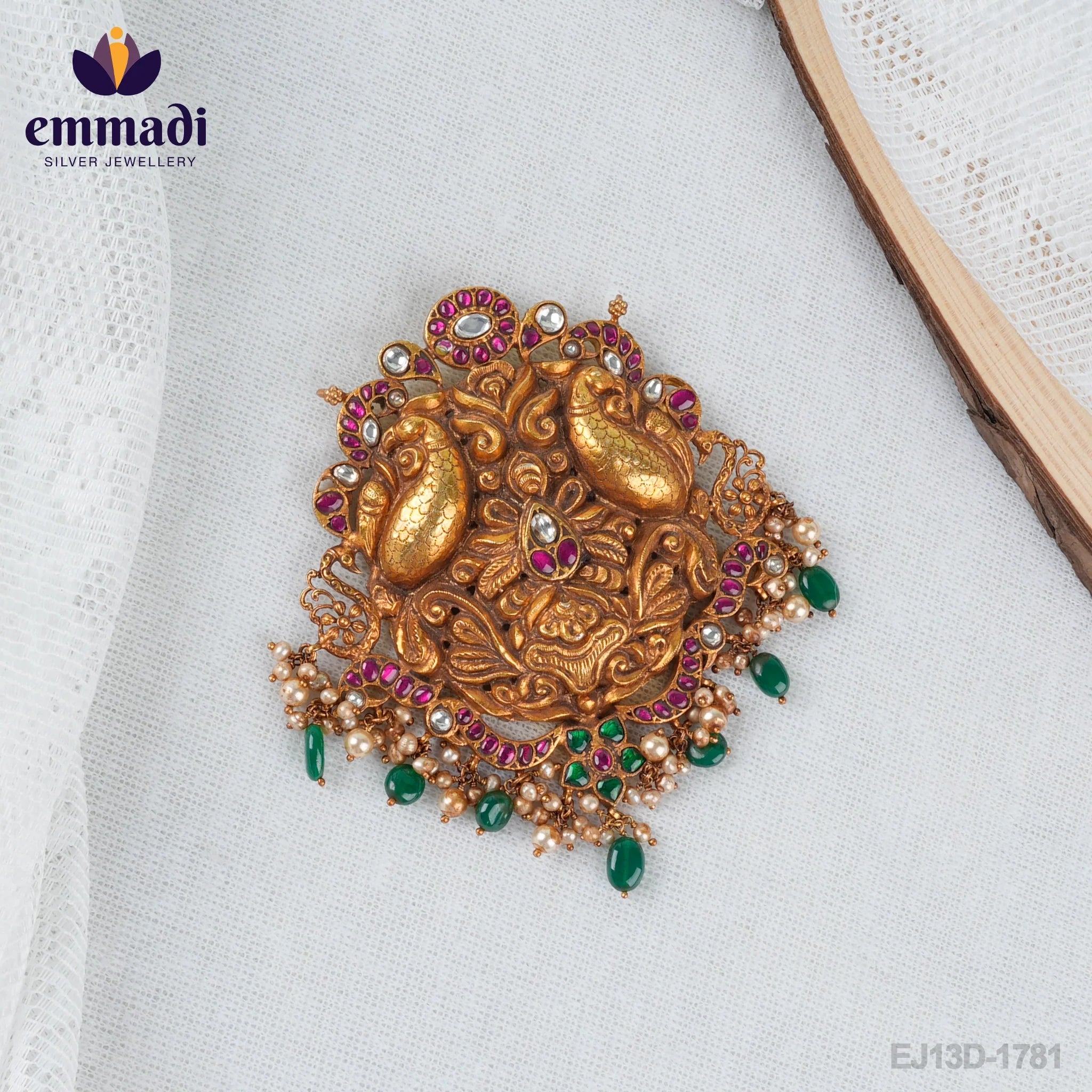 KUNDAN PENDANT: Handcrafted with Pure Gold Plating 92.5 Silver by Emmadi Jewellers