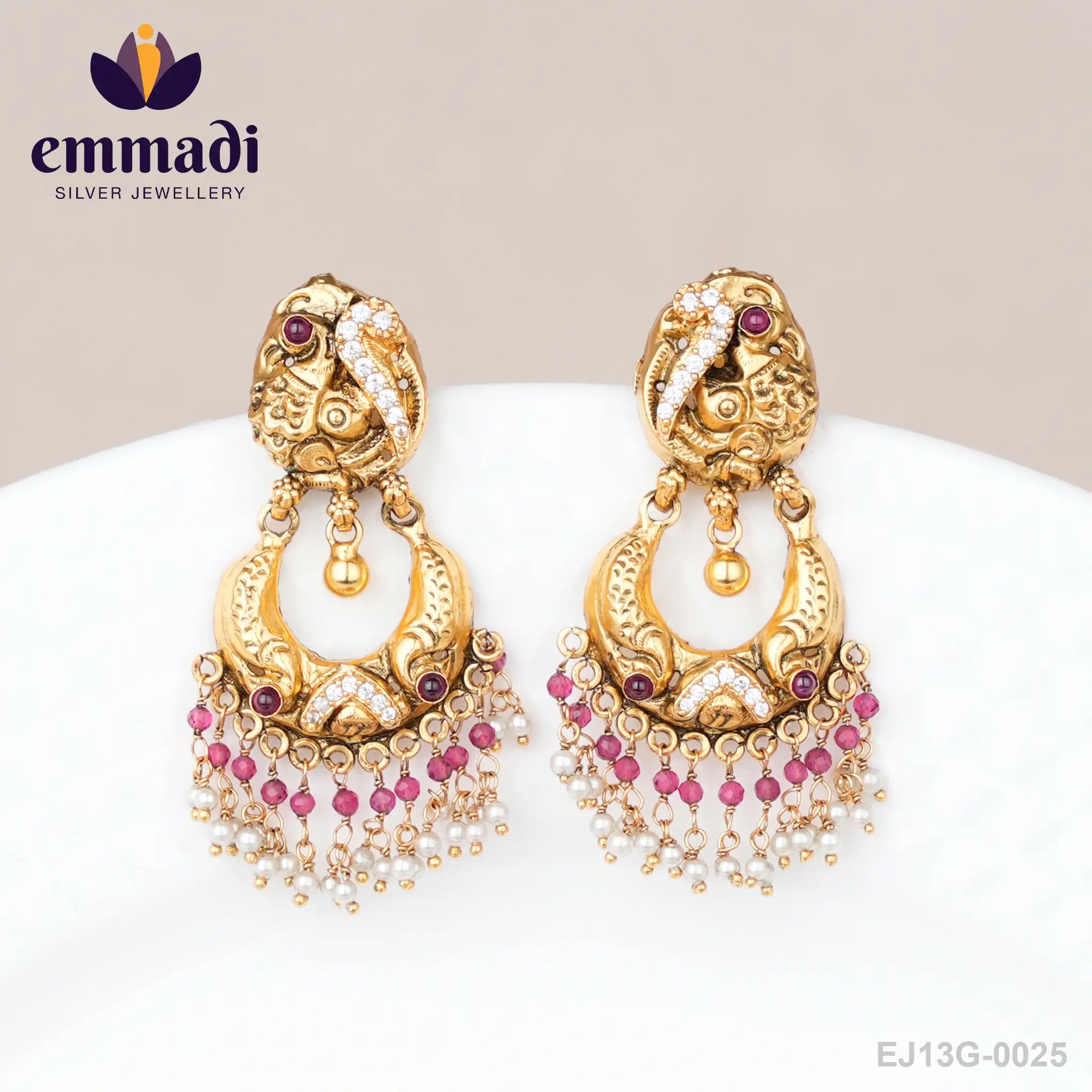 Indulge in the essence of elegance with Malashree Nakshi Red Hangings by Emmadi Silver Jeweller, India's Largest silver brand. ���� Elevate your style with these exquisite earrings, artfully crafted to add a touch of glamour to any ensemble. With intricate detailing and a bold pop of red, these hangings are a statement piece for those who crave luxury and sophistication. Transform any outfit into a masterpiece of glamour and grace with Malashree Nakshi Red Hangings - a true embodiment of refined taste.