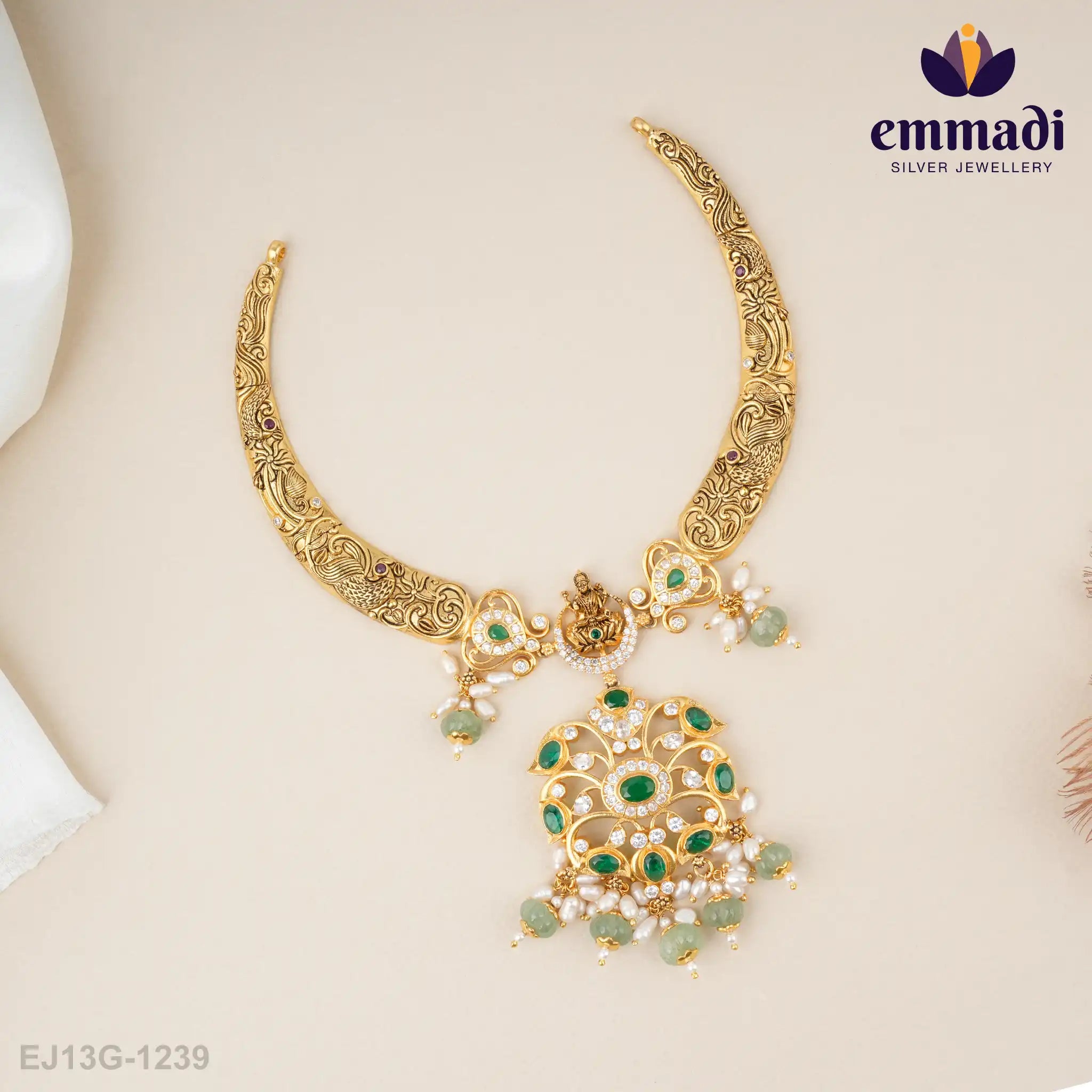 Indulge in the exquisite elegance of the Juhi Nakshi Green Kanty, a true masterpiece from Emmadi Silver Jeweller, India's Largest silver brand. ����