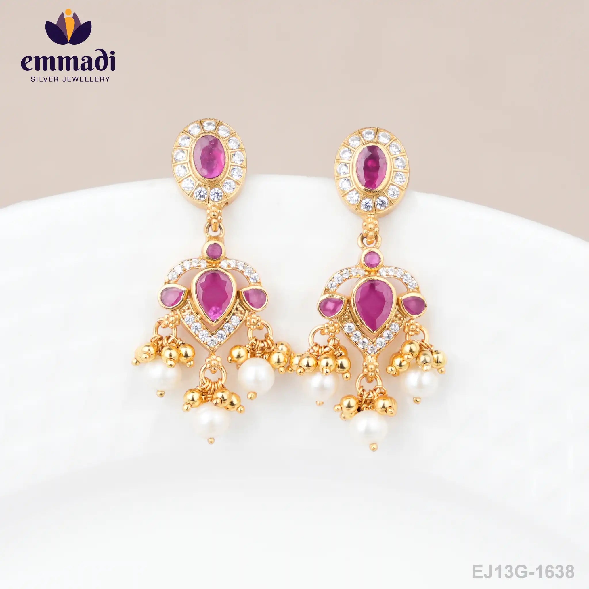 Indulge in the mesmerising allure of Ashvi CZ Pink Hangings, the epitome of elegance and sophistication. Exclusively crafted by Emmadi Silver Jeweller, India's Largest silver brand, these exquisite earrings are a testament to timeless beauty and opulence. Adorn yourself with these shimmering pink hangings and exude a sense of luxury and refinement at every occasion. Elevate your style with Ashvi CZ Pink Hangings and embrace the allure of true glamour.