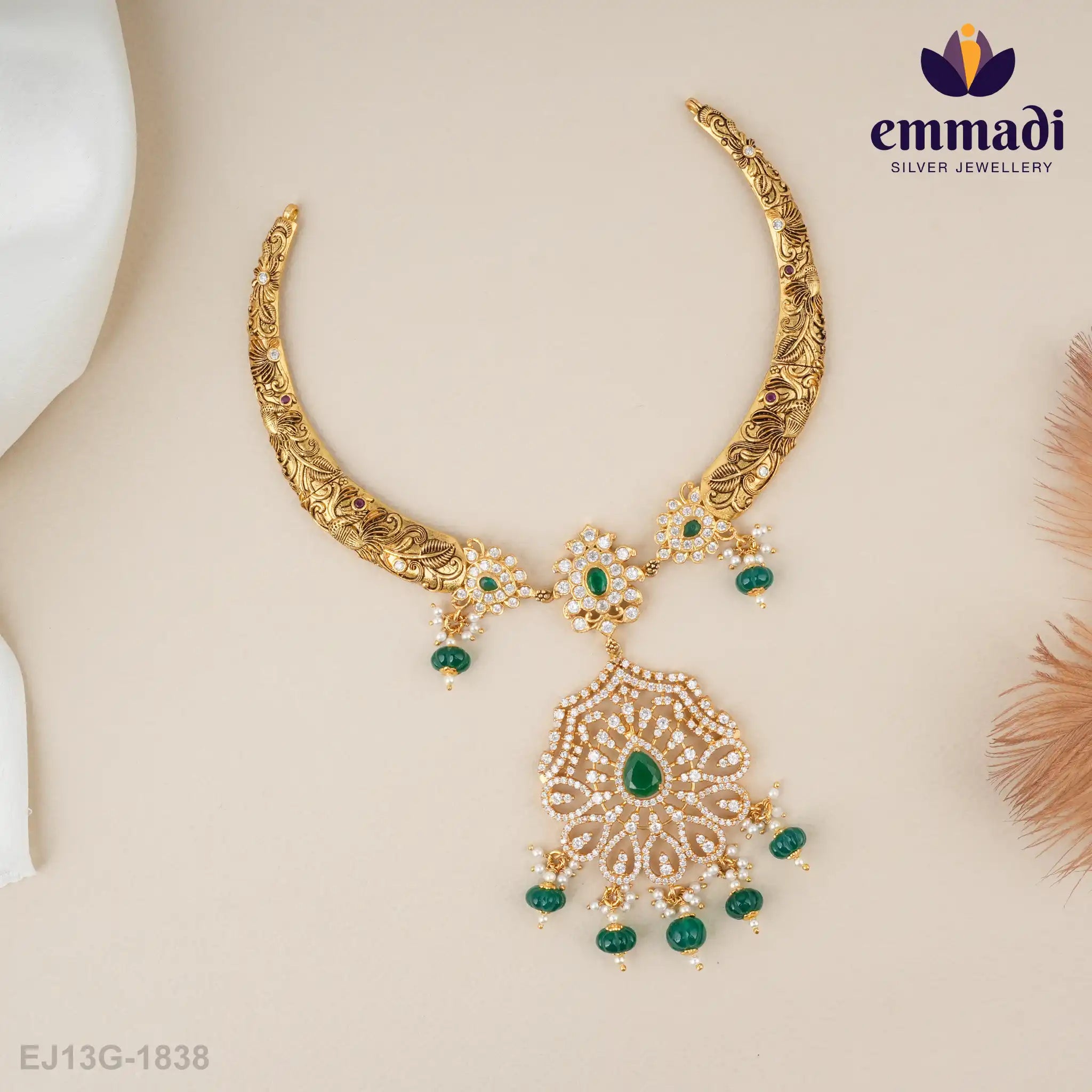 Indulge in the exquisite elegance of the Falvi Nakshi Multi Kanty necklace by Emmadi Silver Jeweller, India's Largest silver brand. Crafted with meticulous attention to detail, this stunning piece effortlessly combines tradition with modern sophistication. Elevate your look with this luxurious necklace, designed to make you stand out in every setting. Adorn yourself with the beauty and grace of Falvi Nakshi Multi Kanty, a true masterpiece of silver craftsmanship.