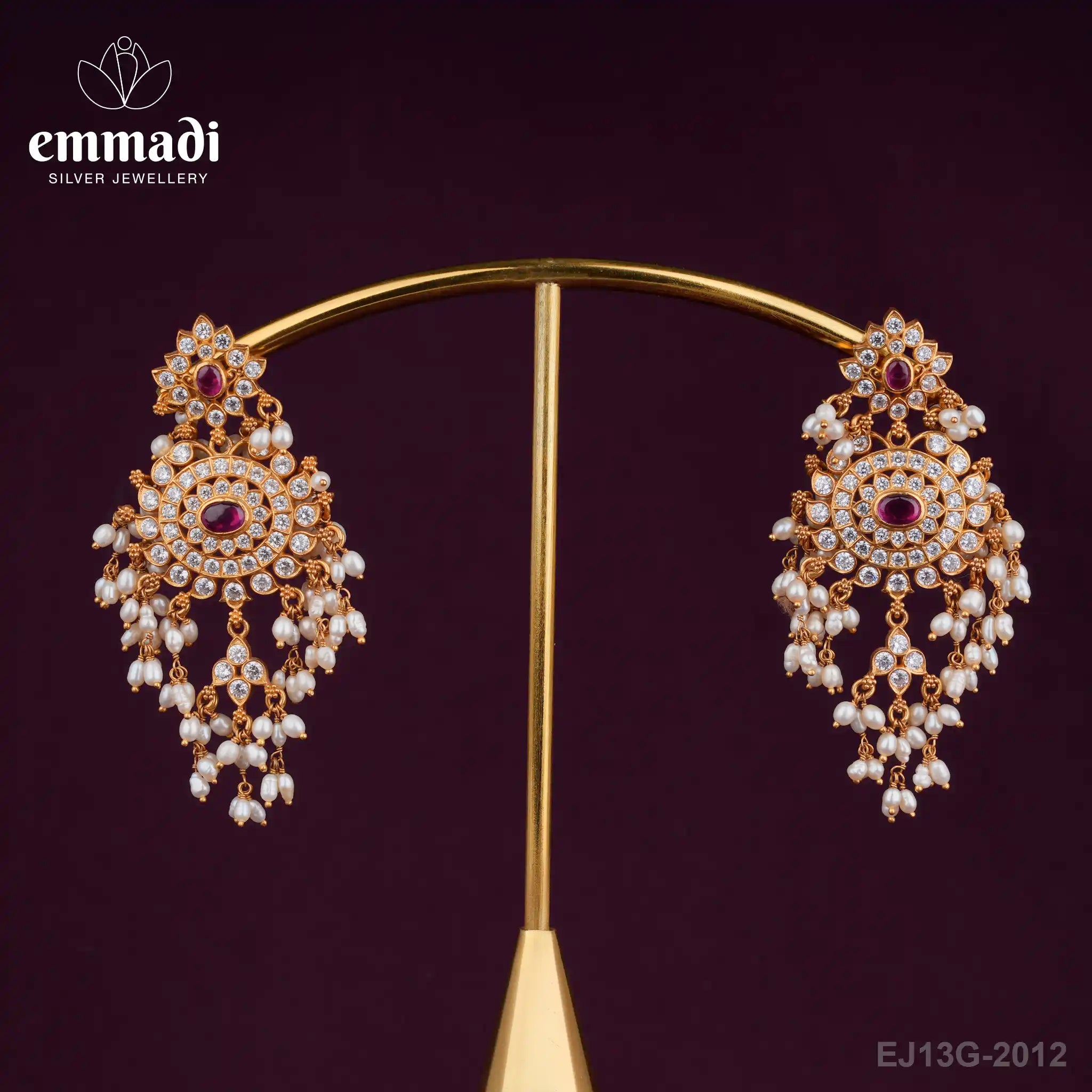 Indulge in the opulence of Kavni Guttapusalu Pink Hangings, crafted by Emmadi Silver Jeweller, India's Largest silver brand. Elevate your ensemble with these exquisite earrings, featuring intricate details and a captivating pink hue. Make a statement of elegance and sophistication with every wear.