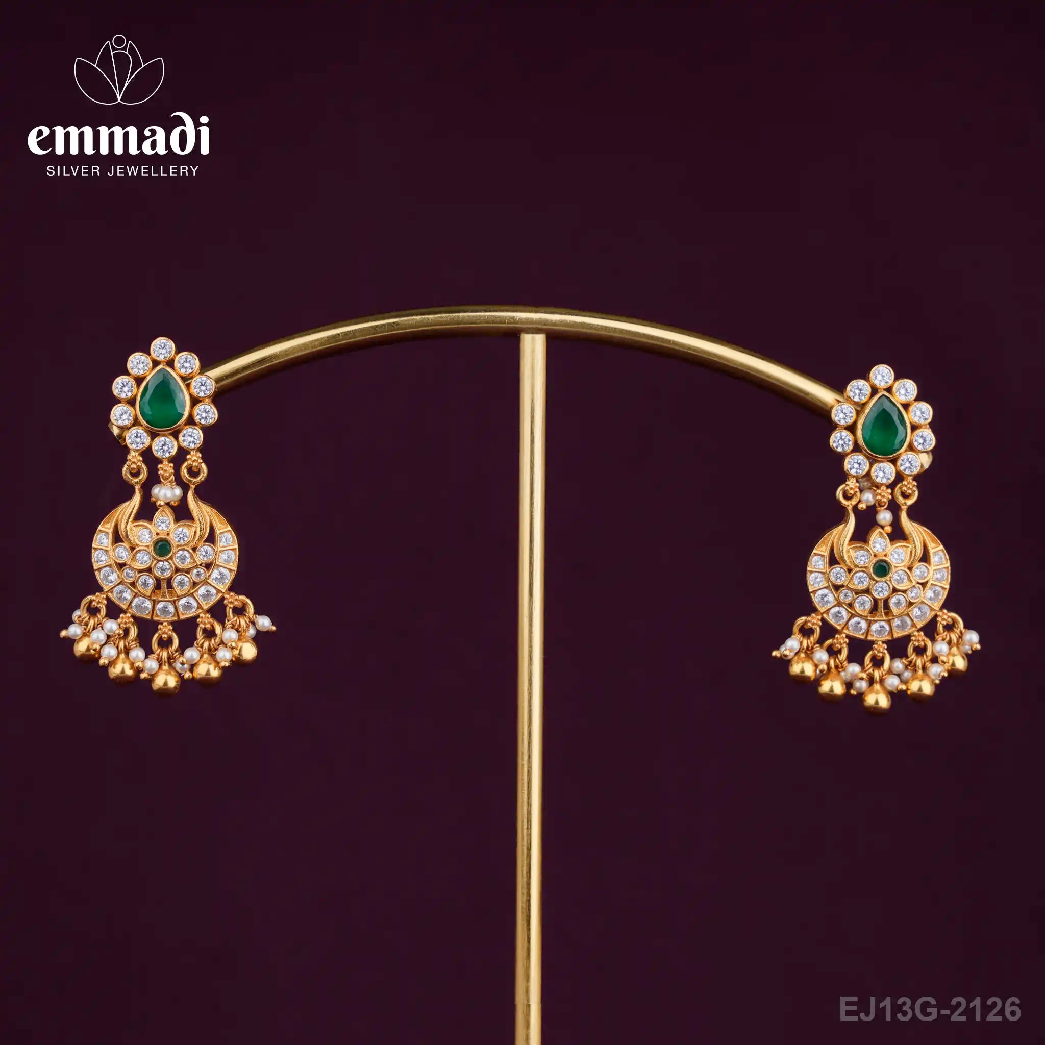 Indulge in the exquisite allure of the Malli Chandbali Green Hangings, impeccably crafted by Emmadi Silver Jeweller, India's Largest silver brand. Elevate your style with these stunning earrings that exude opulence and sophistication. The intricate design and vibrant green hue make them a statement piece for any occasion. Adorn yourself with these luxurious earrings and captivate all with your flawless elegance.