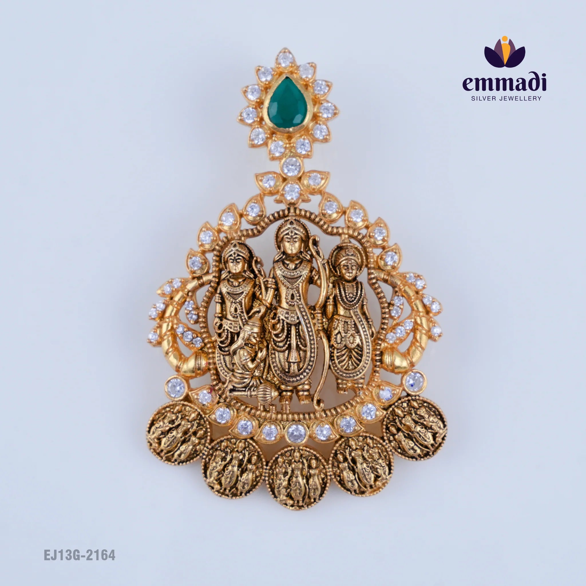 Discover the exquisite beauty of the Manti Ramparivar Green Pendant, a true masterpiece from Emmadi Silver Jeweller, India's Largest silver brand. Elevate your style with this stunning green pendant that exudes luxury and sophistication. Make a bold statement and captivate all eyes with this elegant piece that showcases impeccable craftsmanship. Indulge in the allure of fine jewellery and add a touch of glamour to your ensemble with this exceptional pendant.