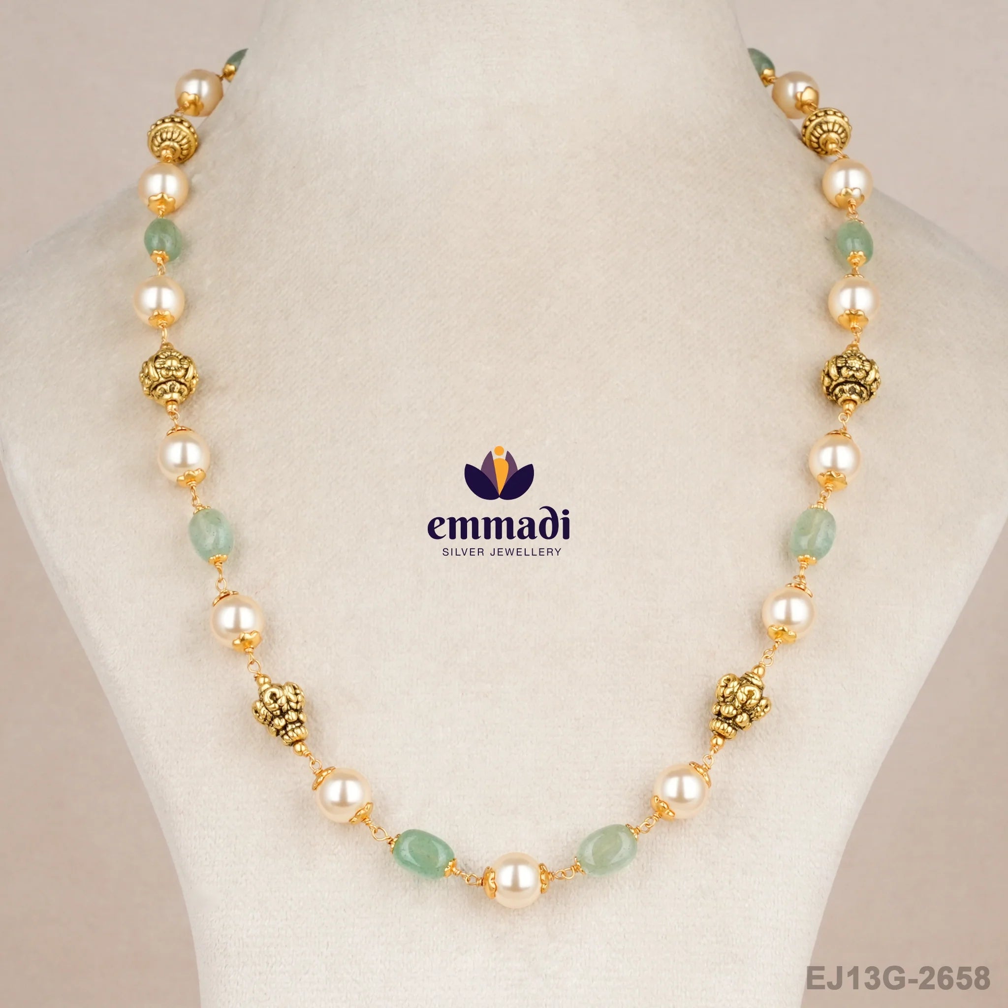 Indulge in the elegance of Sruti Pearls White Chain, a timeless masterpiece crafted by Emmadi Silver Jeweller, India's Largest silver brand. Elevate your style with this exquisite chain that exudes luxury and sophistication. Immerse yourself in the world of elegance with Sruti Pearls White Chain.