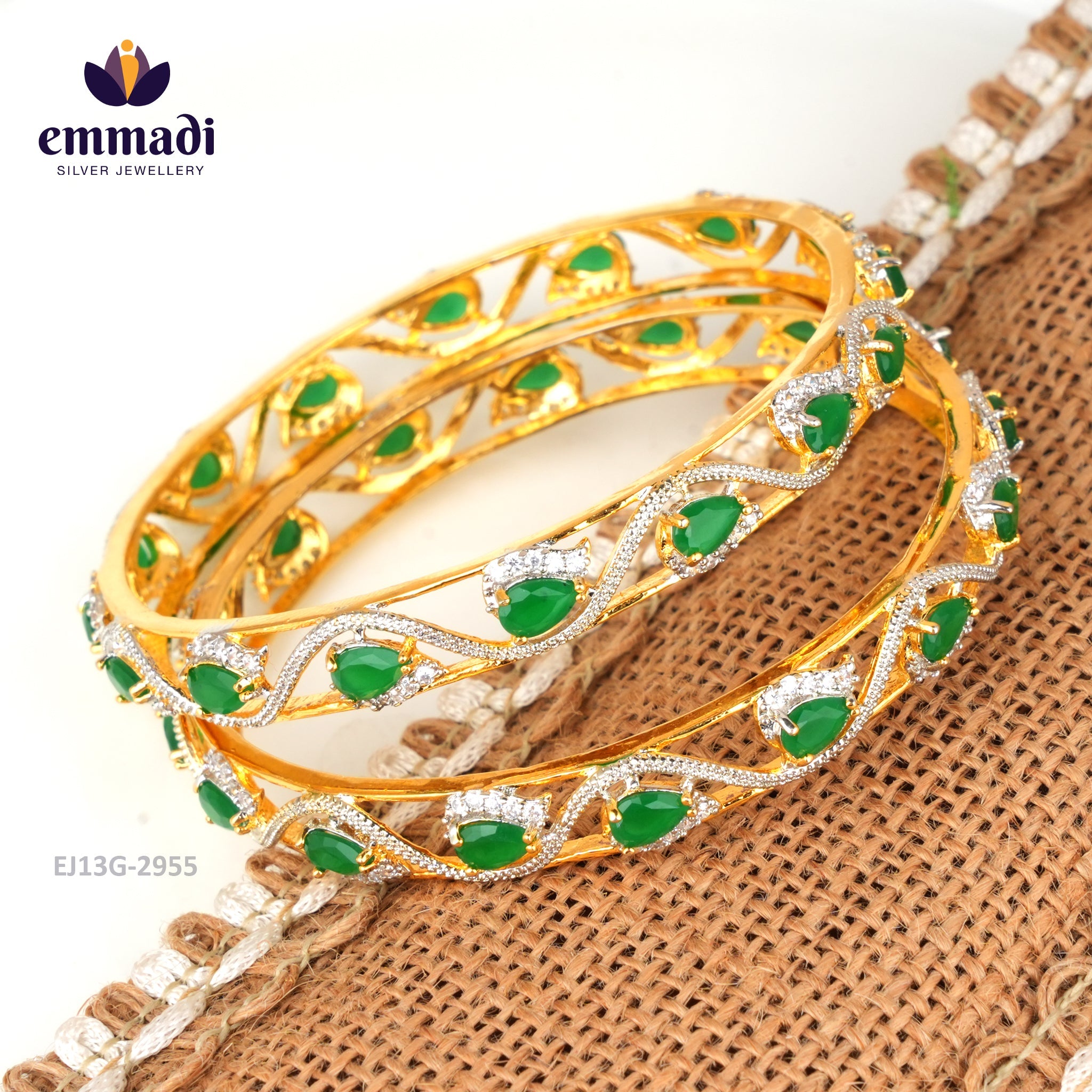 The green CZ stones used in these bangles are carefully selected for their brilliant color and clarity. The vibrant green hue adds a pop of color to any outfit, making these bangles a versatile accessory that can be worn for both casual and formal occasions. Whether you're dressed up for a special event or adding a touch of glamour to your everyday look, these bangles are sure to make a statement.