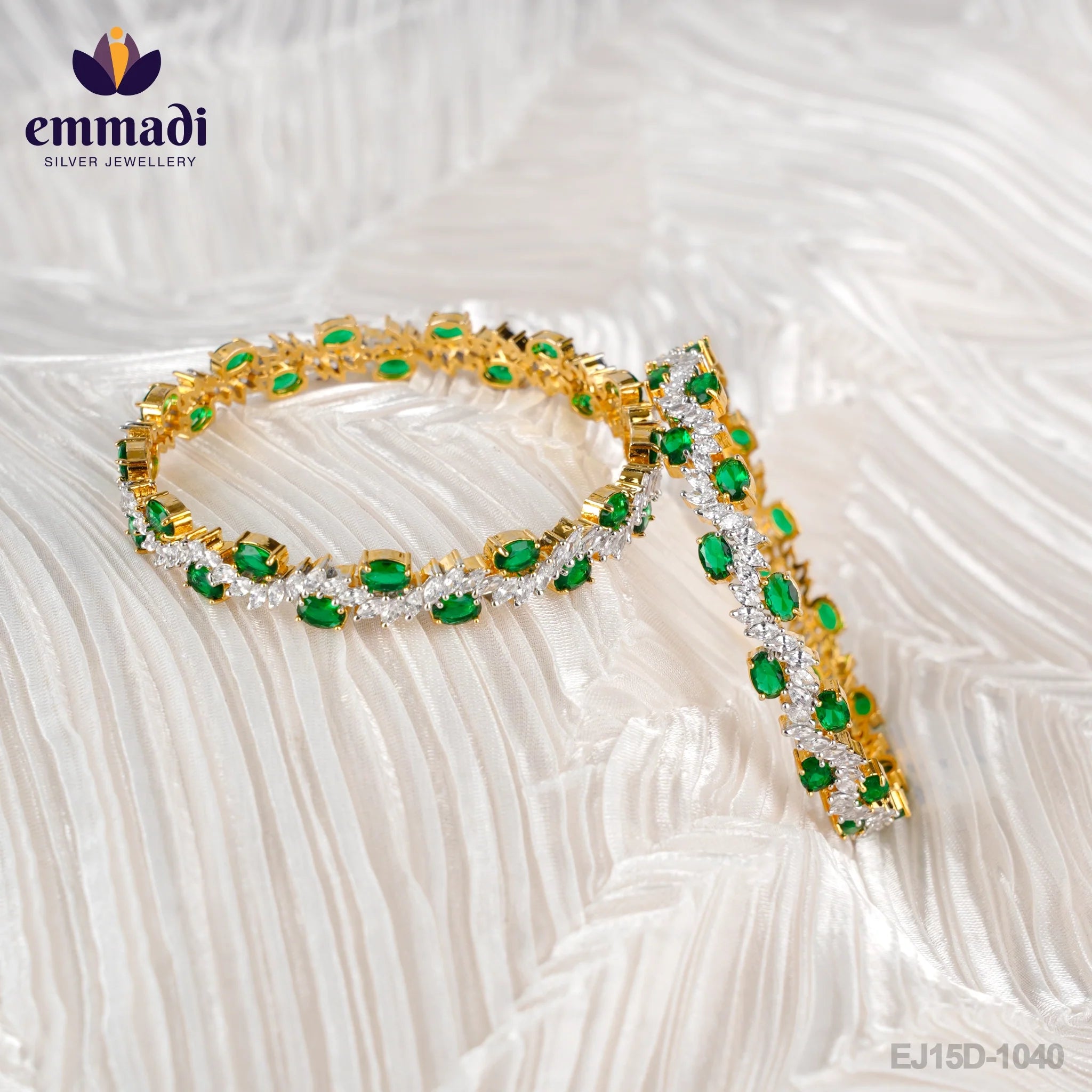 The green CZ stones used in these bangles are carefully selected for their brilliant color and clarity. The vibrant green hue adds a pop of color to any outfit, making these bangles a versatile accessory that can be worn for both casual and formal occasions. Whether you're dressed up for a special event or adding a touch of glamour to your everyday look, these bangles are sure to make a statement.