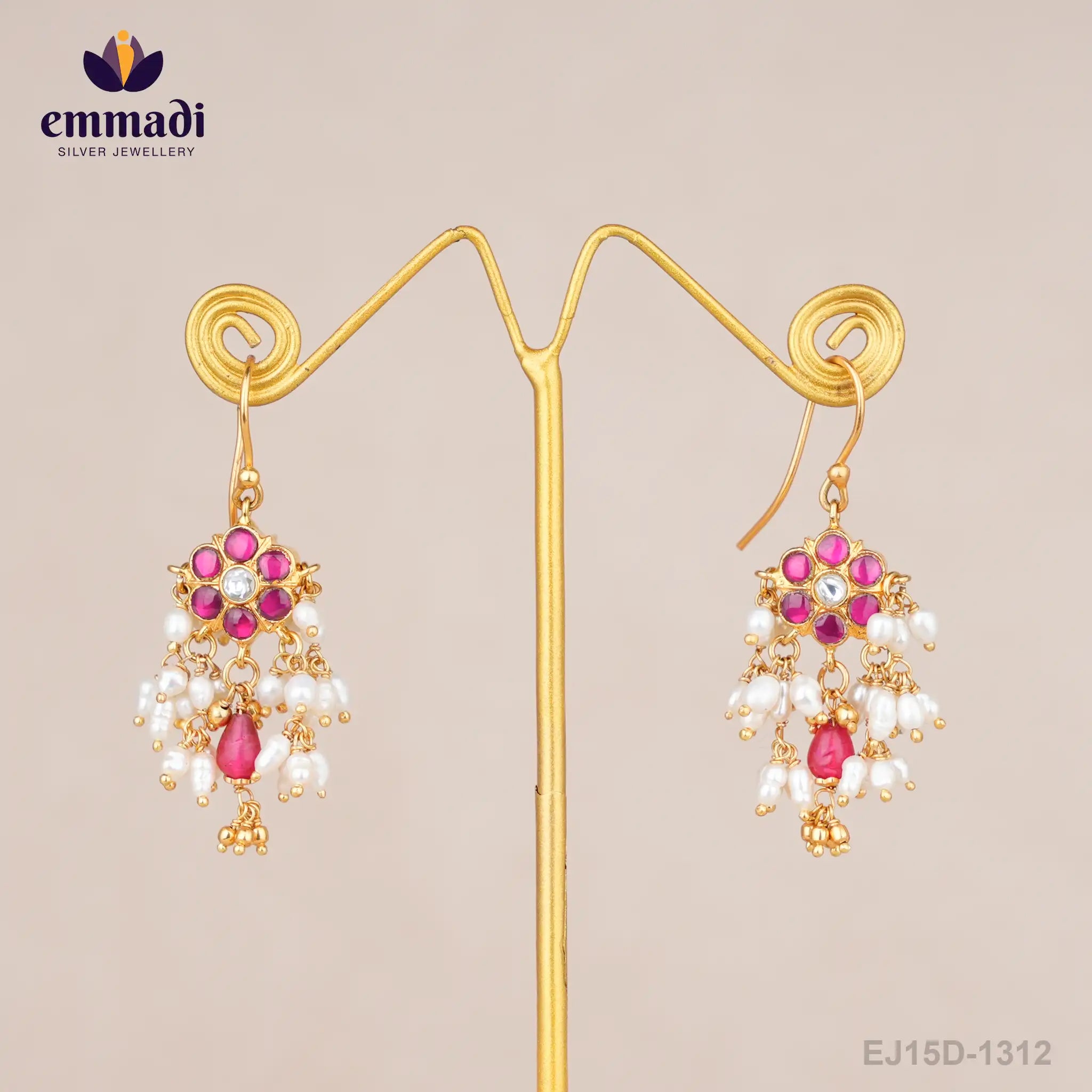 Indulge in the exquisite charm of Karabi Kundan Pink Hangings, a true symbol of luxury and elegance. Handcrafted by Emmadi Silver Jeweller, India's Largest silver brand, these delicate earrings exude sophistication and style. Elevate your look with a touch of timeless beauty and add a touch of glamour to any ensemble. Embrace the allure of tradition and modernity with these stunning pink kundan earrings.