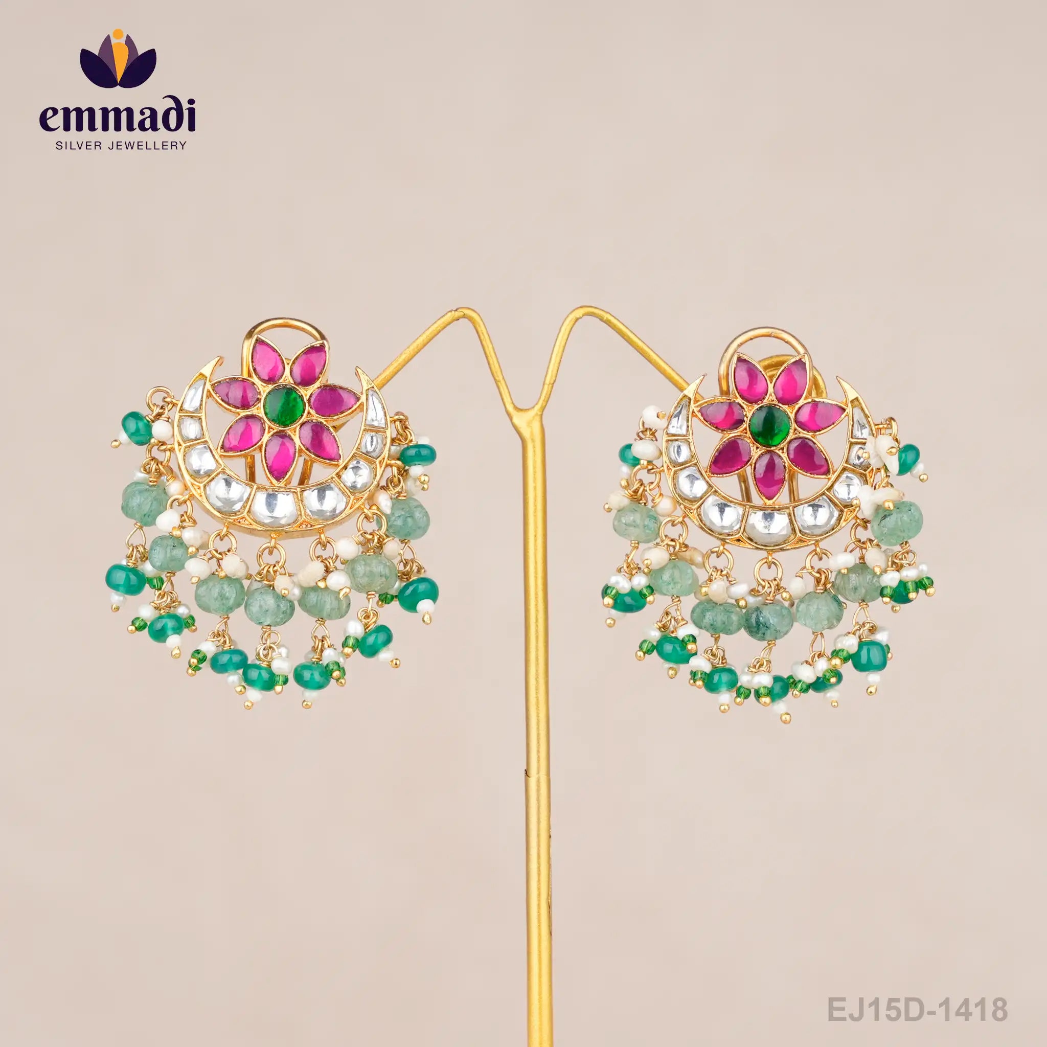 Indulge in opulence with the Kaveri Kundan Multi Hangings from Emmadi Silver Jeweller, India's Largest silver brand. Elevate your look with these intricate and luxurious earrings, perfect for adding a touch of sophistication to any outfit. Impeccably crafted with exquisite Kundan detailing, these earrings are a true masterpiece of elegance and style. Make a statement at any event with these stunning Kaveri Kundan Multi Hangings - a must-have for those who appreciate the finer things in life.