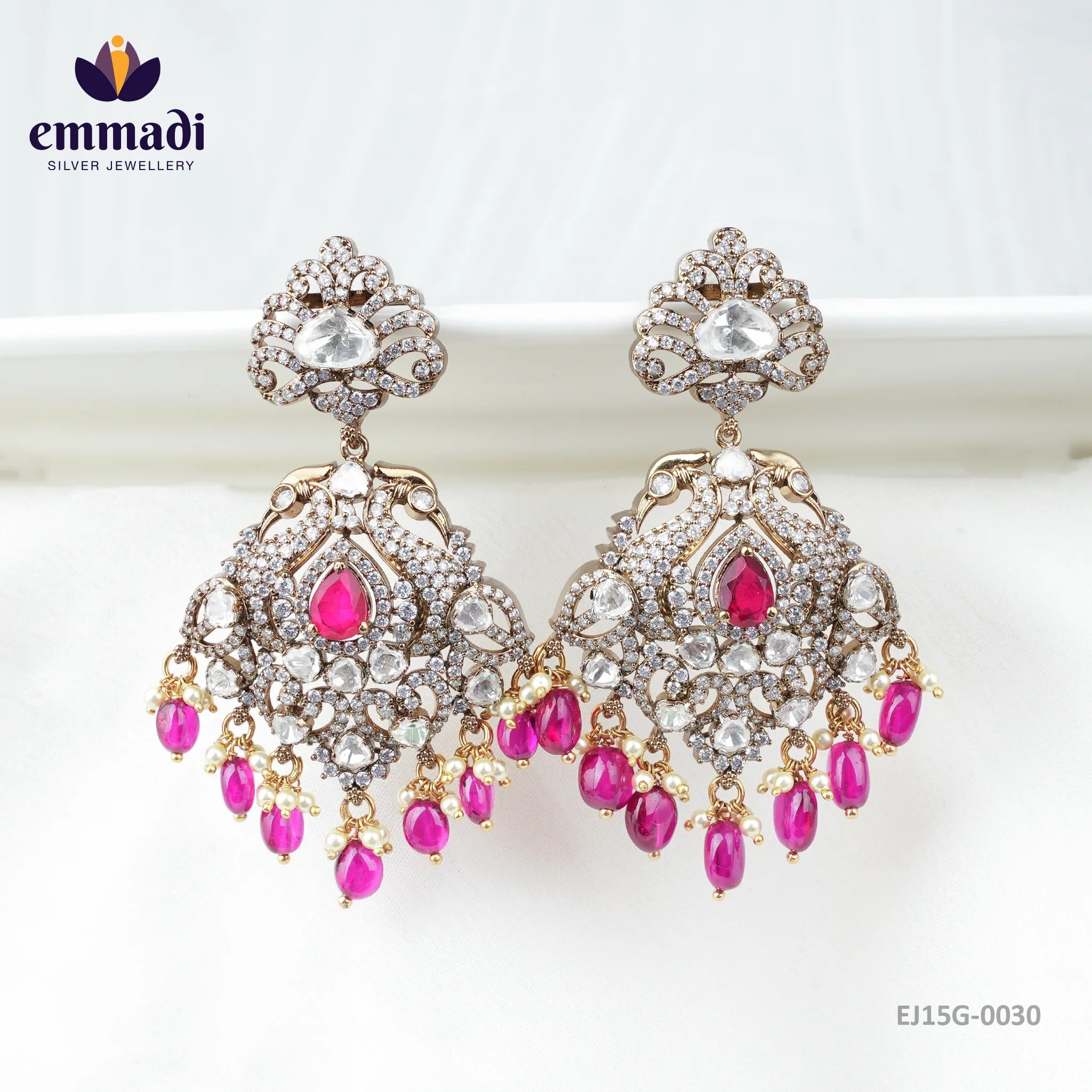 Indulge in the opulent elegance of Emmadi Silver Jeweller's Kuvali Victorian Red Hangings. Impeccably crafted to exude sophistication and charm, these exquisite earrings are a tribute to timeless beauty. Elevate your style with a touch of luxury and make a statement wherever you go. Explore the finest craftsmanship from India's Largest silver brand and adorn yourself with unparalleled grace.