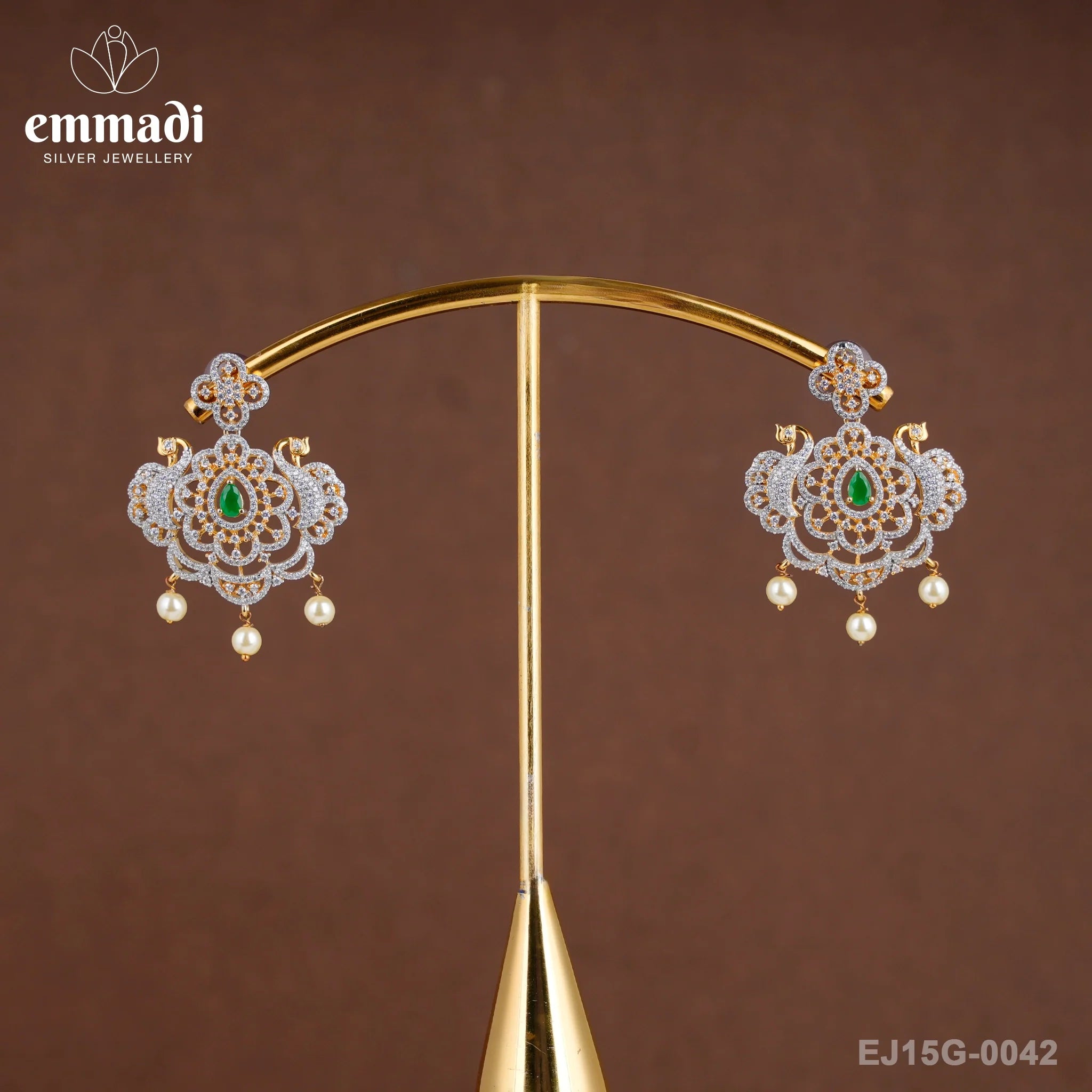 Indulge in the opulent beauty of Labuki Premium Cz Green Hangings, a true marvel from Emmadi Silver Jeweller, India's Largest silver brand. Crafted with exquisite detail and set with mesmerising green CZ stones, these earrings are a luxurious statement piece fit for a queen. Elevate your style with elegance and grace with these stunning hangings that will capture attention and admiration wherever you go. Experience the allure of premium craftsmanship and sophistication with Labuki.