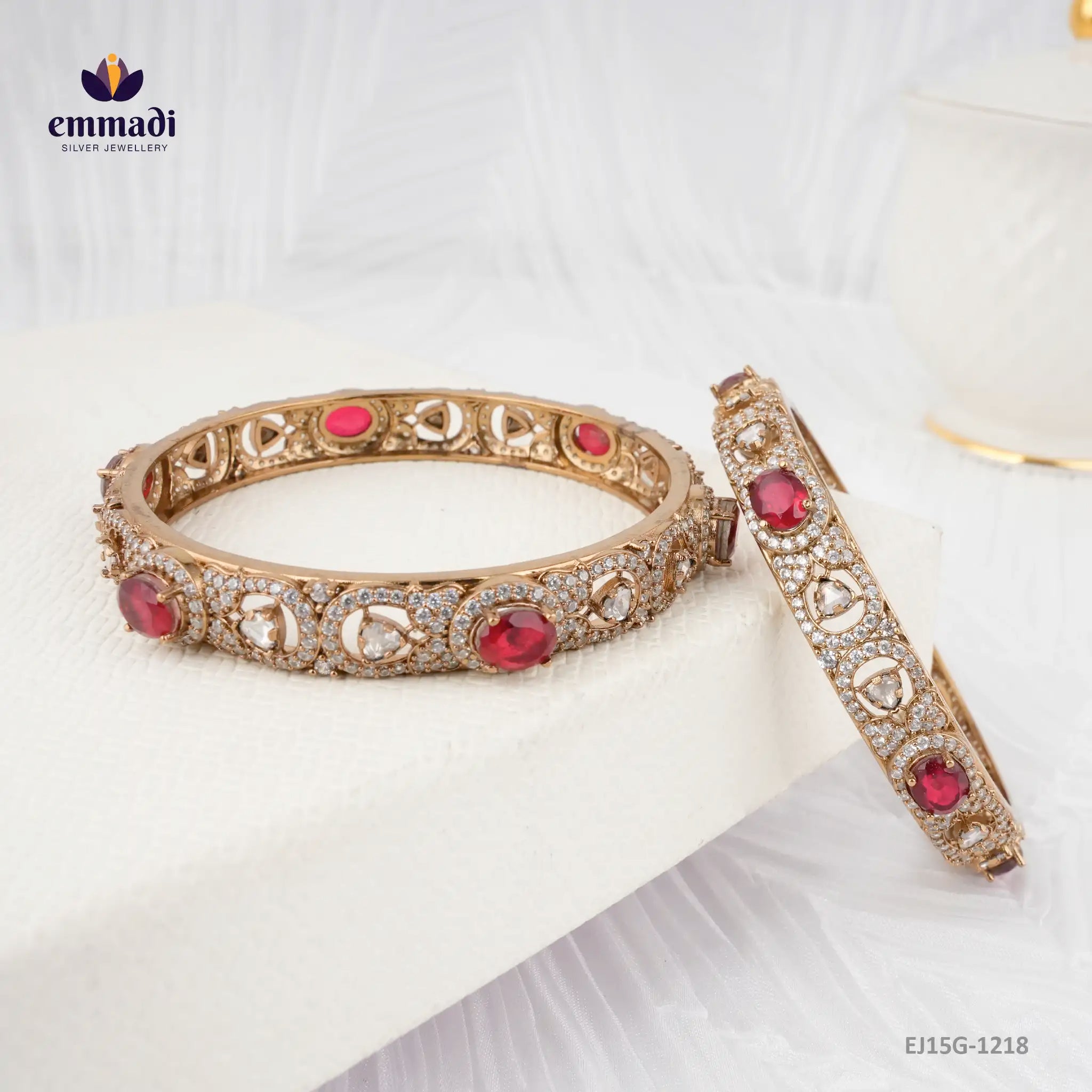 Step into a realm of supreme opulence and undeniable refinement with the Bibhuti Victorian Red Bangles from the illustrious Emmadi Silver Jewellery, India's Largest Silver Brand. Crafted with unparalleled artistry and adorned with a deep red hue that exudes regal sophistication, these bangles are the epitome of aristocratic elegance. Elevate your style to a whole new level of grandeur and decadence with these timeless pieces that whisper tales of luxury and extravagance. Embrace the allure of aristocracy and grace yourself with the Bibhuti Victorian Red Bangles.
