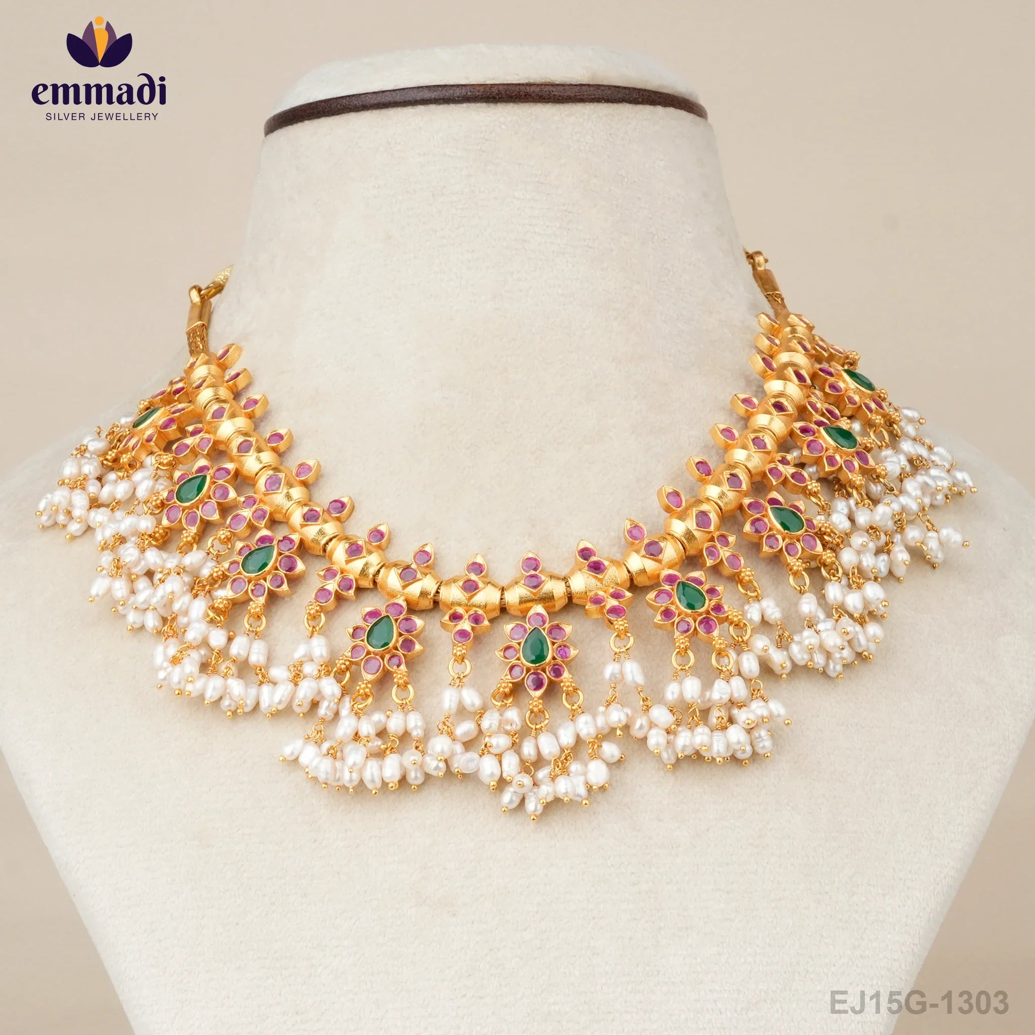 Indulge in the regal charm of the Dhara?i Guttapusalu Multi Necklace, a masterpiece from Emmadi Silver Jeweller, India's Largest silver brand. Adorn yourself with this exquisite creation, showcasing intricate detailing and a luxurious design. Elevate your style to new heights with this mesmerising necklace, perfect for those who appreciate fine craftsmanship and elegant allure. Unveil your inner sophistication and grace with this captivating piece that exudes opulence and timeless beauty. Make a statement that truly stands out with the Dhara?i Guttapusalu Multi Necklace.