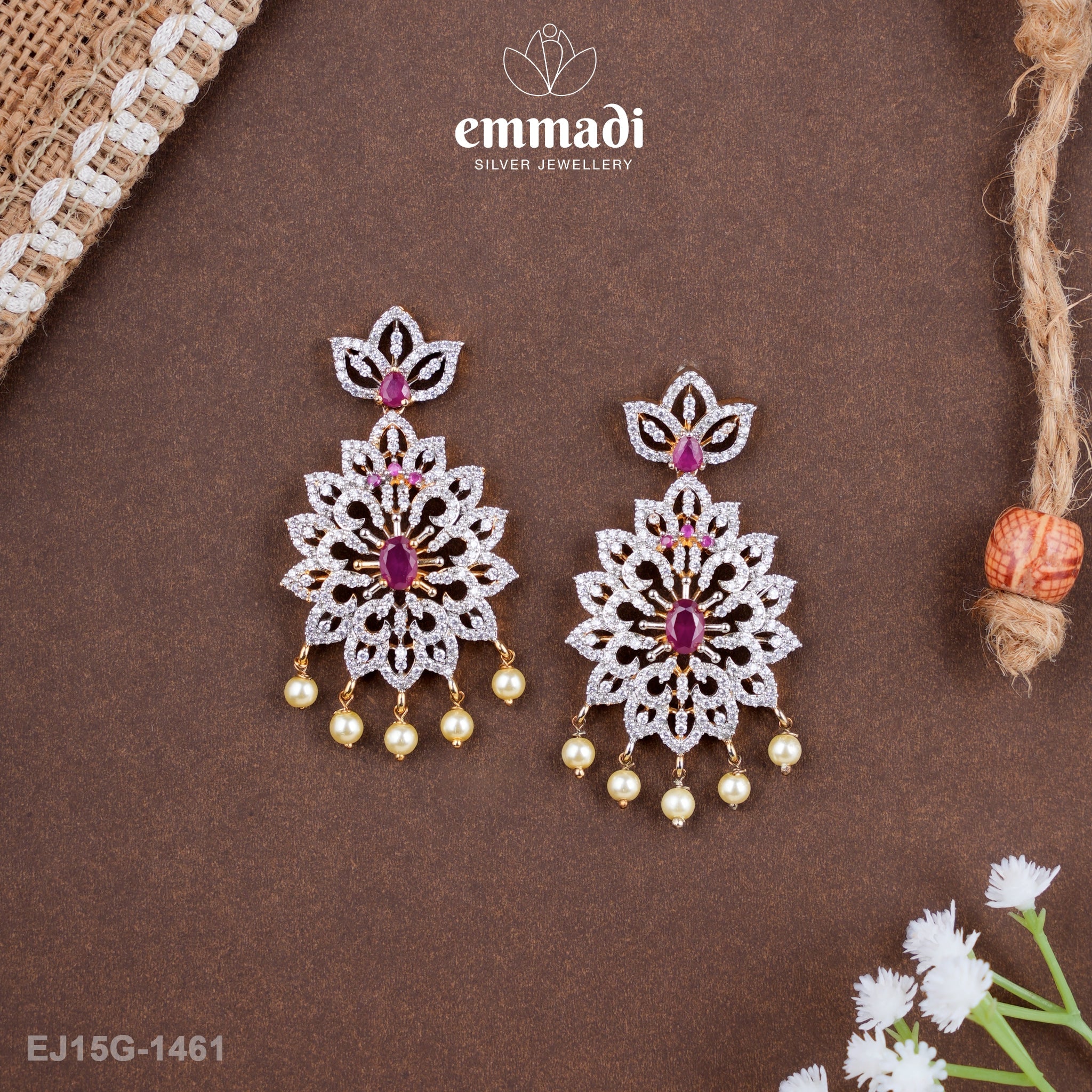 Indulge in elegance with Jayasri Premium Cz Pink Hangings by Emmadi Silver Jeweller, India's Largest silver brand. Enhance your style with these exquisitely crafted earrings that effortlessly blend sophistication and glamour. Elevate your look with a touch of luxury and grace that is sure to make a statement at any event.