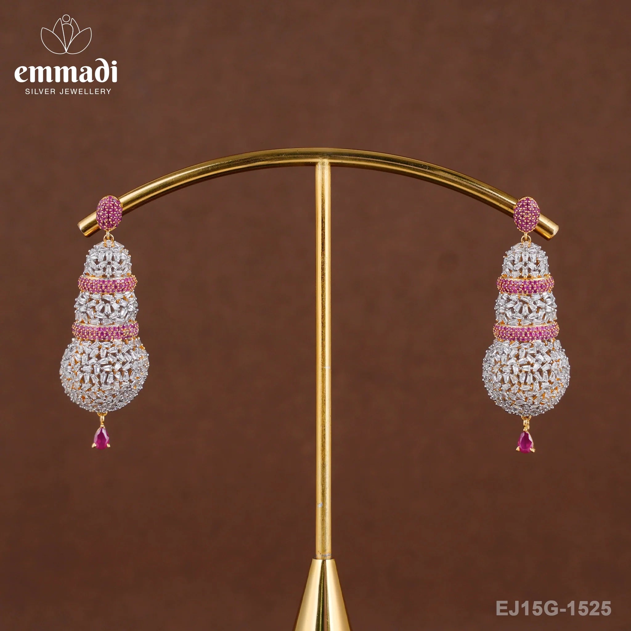 Introducing the exquisite Kalyani Premium CZ Pink Hangings, crafted by Emmadi Silver Jeweller, India's largest silver brand. Elevate your style with these dazzling earrings, designed to add a touch of luxury to any ensemble. Shine bright like a diamond with these stunning pink CZ hangings, a perfect blend of sophistication and elegance. Embrace the glamour and sparkle with Kalyani Premium CZ Pink Hangings.
