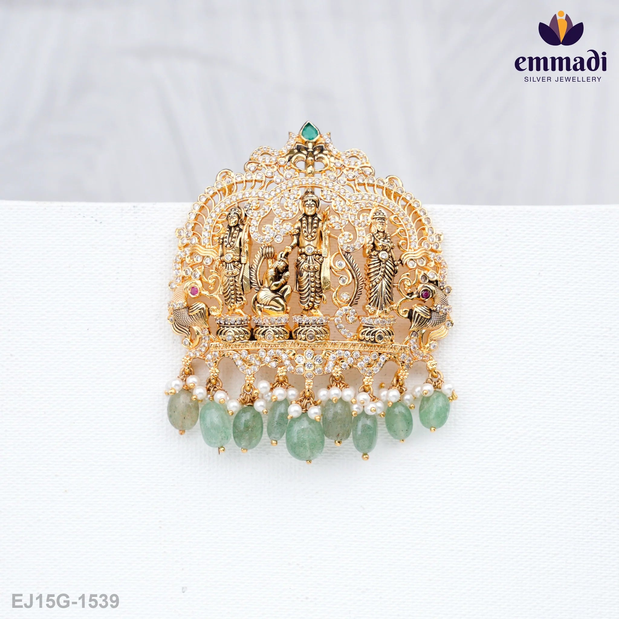 Indulge in the captivating allure of the Kandiri Ramparivar Green Pendant, a masterpiece from the prestigious Emmadi Silver Jeweller, India's Largest silver brand. Crafted with impeccable artistry, this exquisite pendant exudes elegance and sophistication. Let its vibrant green gemstone embrace your neckline with a touch of luxury and glamour, elevating your every ensemble to new heights of style. Adorn yourself with the essence of opulence and grace - a true statement of timeless beauty.