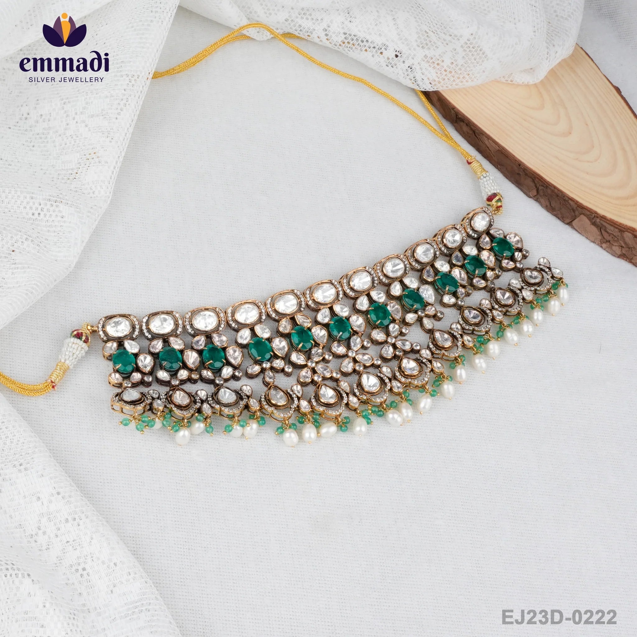 - Pure Gold Plating: The Victorian Green Choker is adorned with pure gold plating that gives it a luxurious and radiant look. The gold plating adds an extra layer of richness to the choker, making it a truly special piece of jewelry.