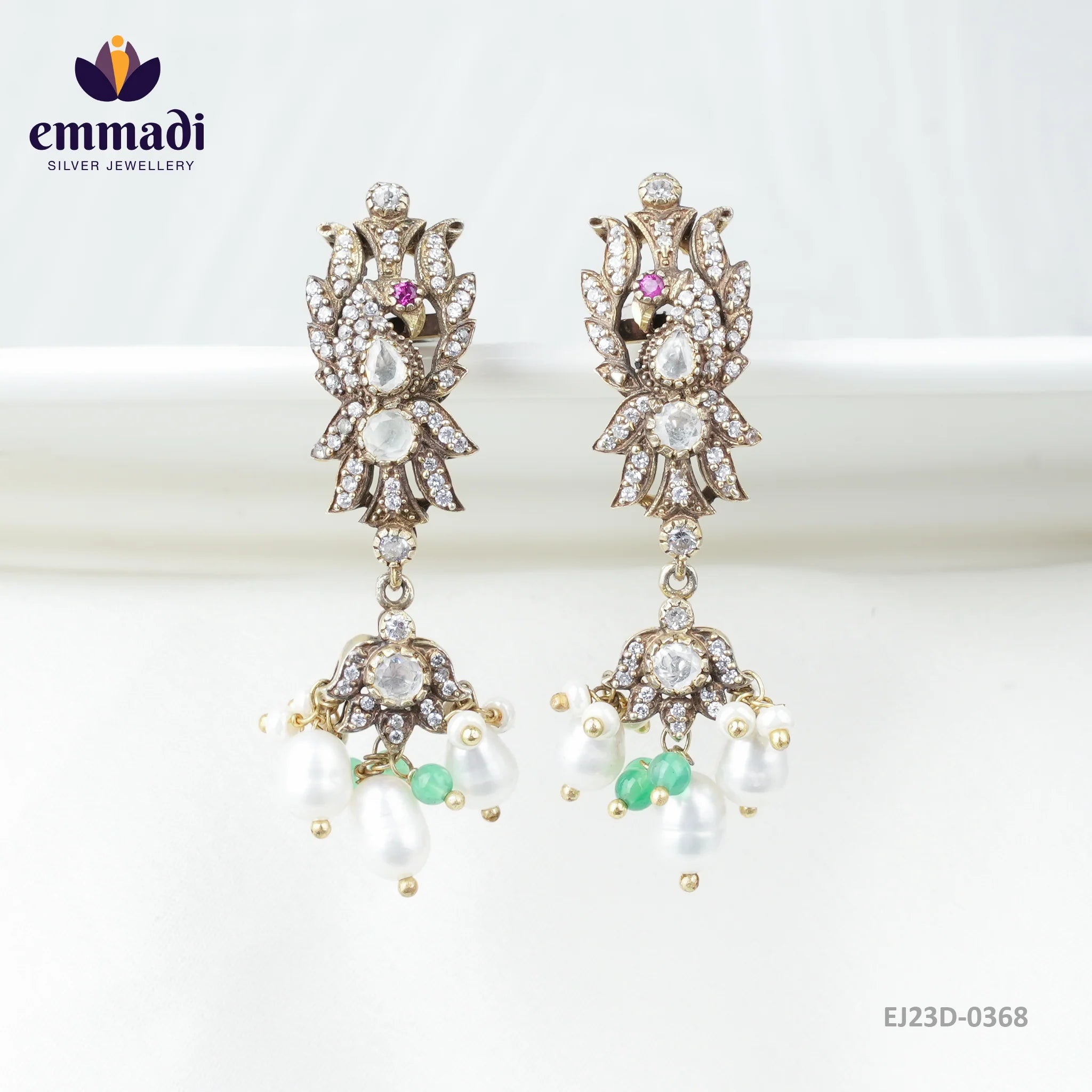 Step into a world of elegance with Emmadi Silver Jeweller's Mandavi Victorian White Hangings. Crafted with precision and attention to detail, these exquisite earrings are the epitome of sophistication. Let your inner glamour shine through with these luxurious pieces, designed to elevate any outfit to a new level of style. Experience the opulence of India's Largest silver brand and make a statement with the Mandavi Victorian White Hangings.