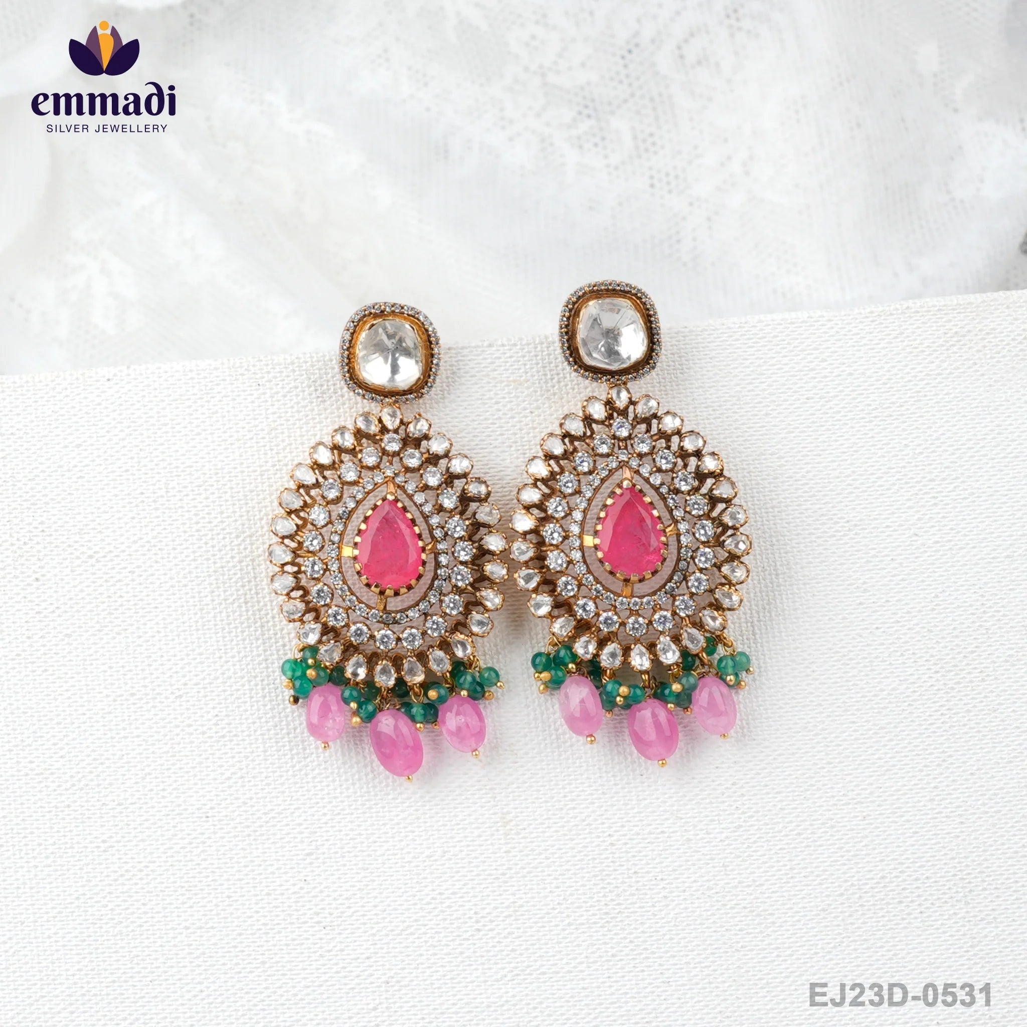 Whether you're looking for a statement piece to elevate your ensemble or a unique gift for a loved one, our Victorian pink hangings are a timeless addition to any jewelry collection. The versatility of these earrings allows you to dress them up or down, making them a versatile and must-have accessory.